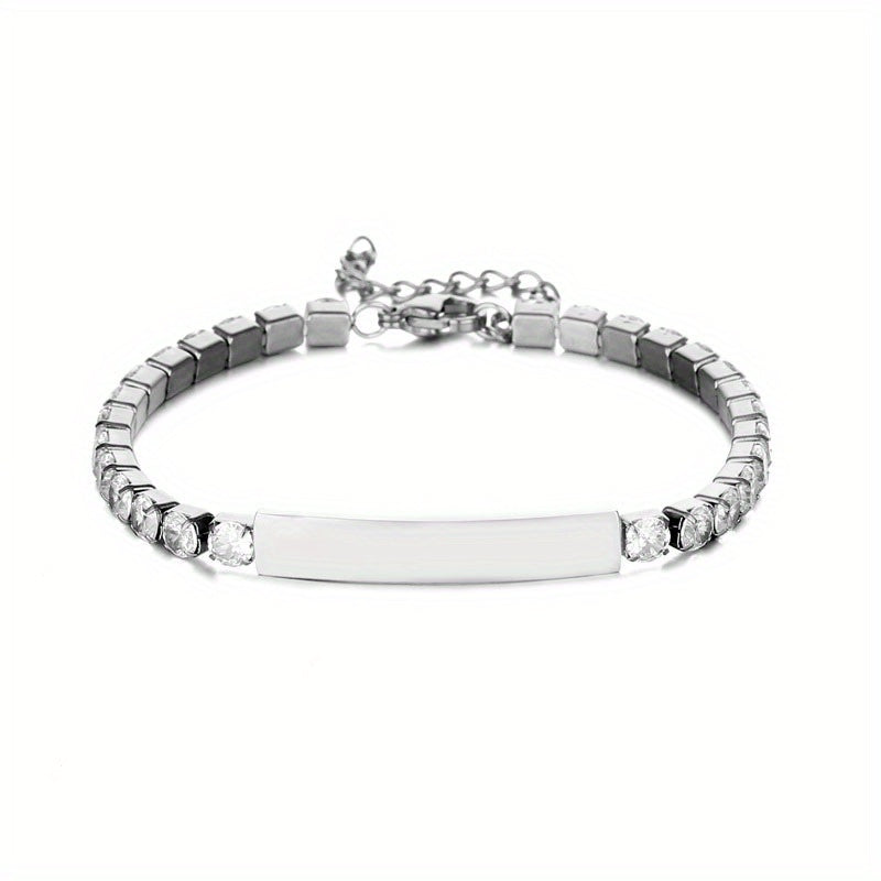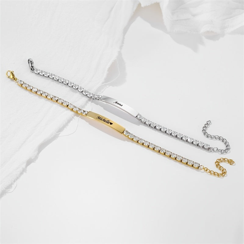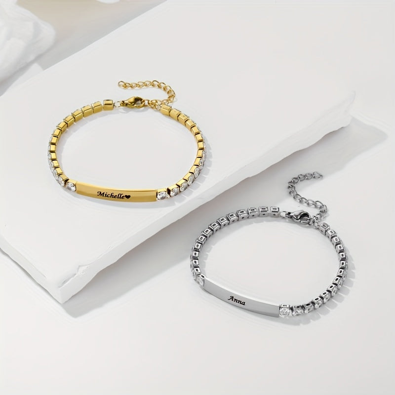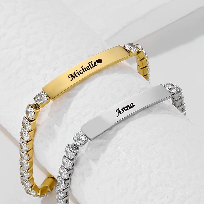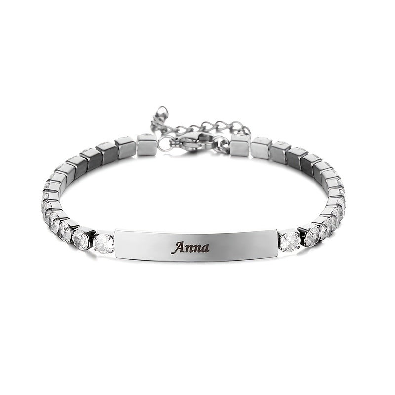 This titanium steel bracelet is a perfect gift for your girlfriend. Customize it with your names engraved on it. The adjustable design ensures a comfortable fit.