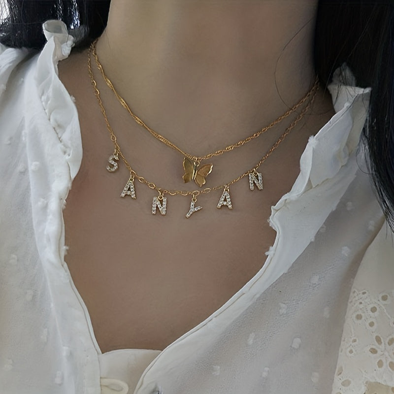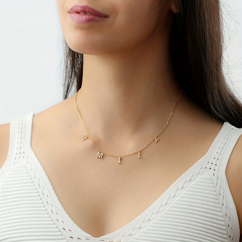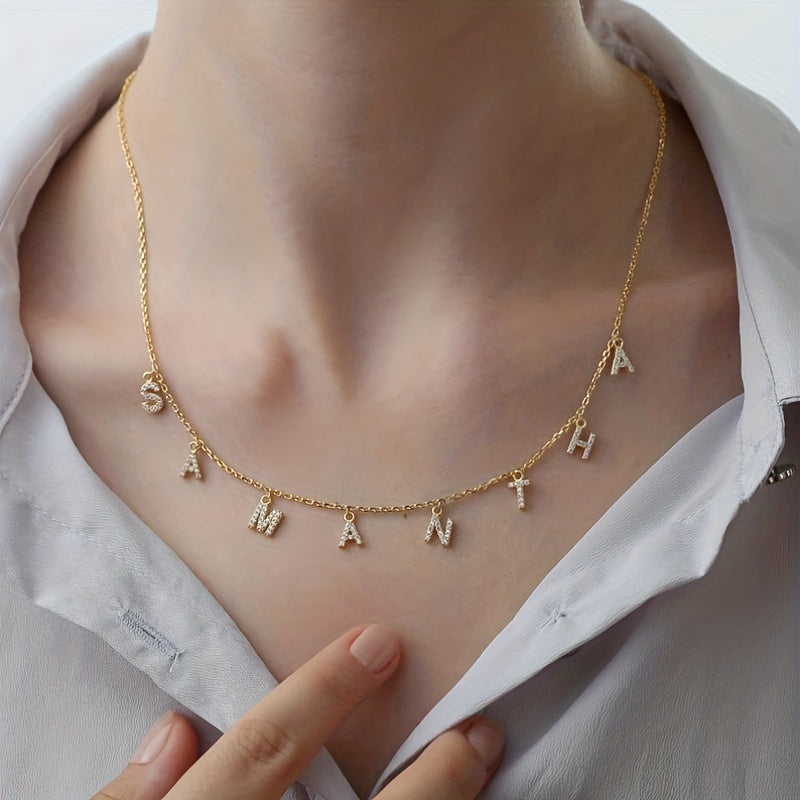 This custom stainless steel necklace features a zircon initial nameplate with stunning crystal accents. Makes a perfect statement piece or thoughtful home gift.