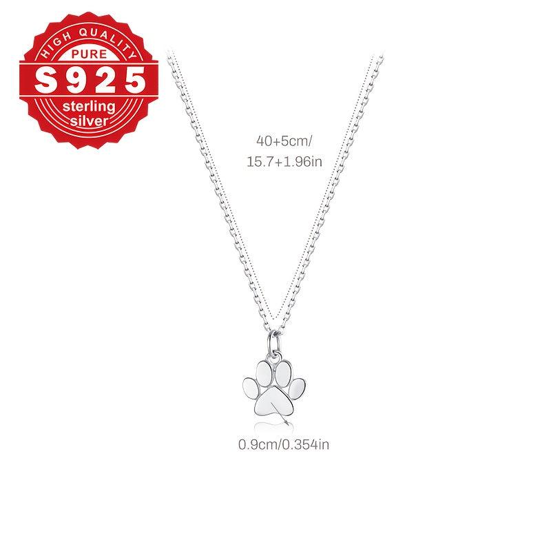 This necklace features a pet paw print design in S925 sterling silver, making it a perfect accessory for pet lovers. It is suitable for casual attire and is hypoallergenic.