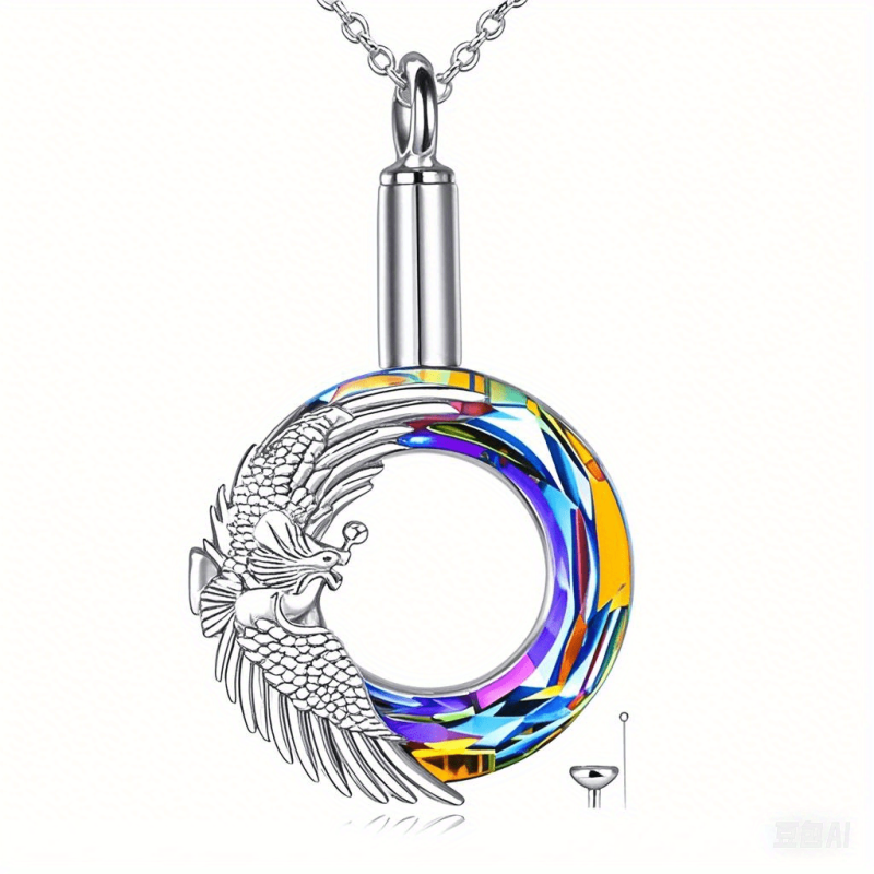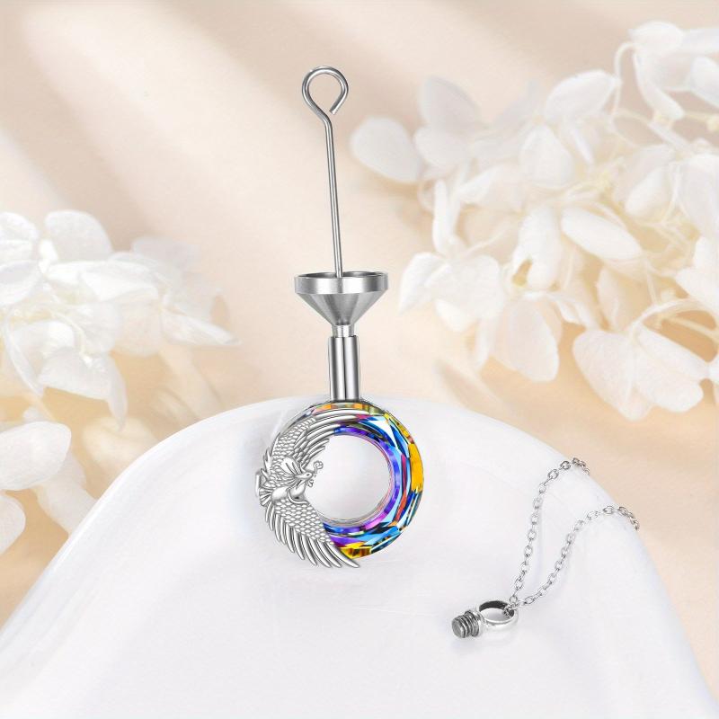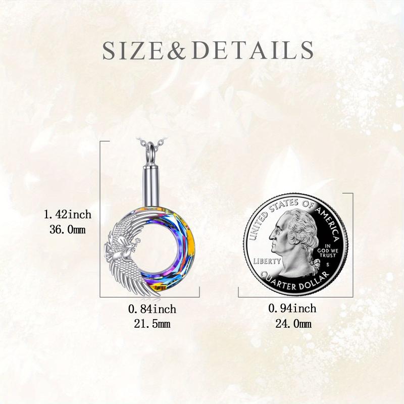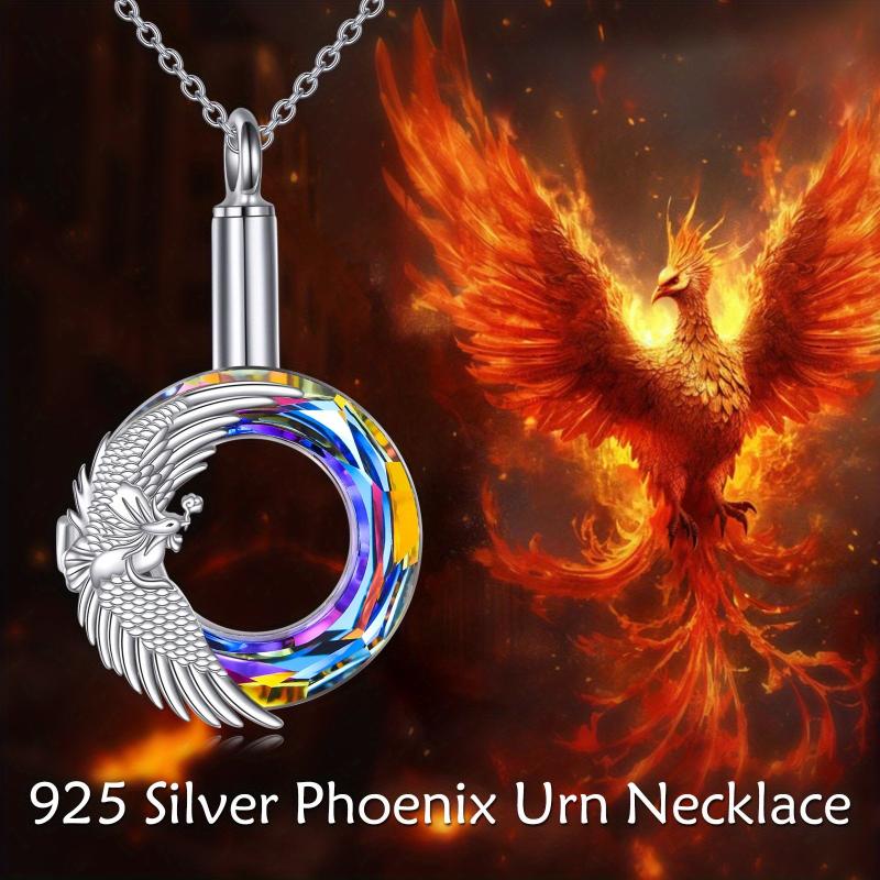 This stunning Phoenix 925 Sterling Silver Urn Necklace features an artificial crystal pendant that can hold ashes. It is a beautiful piece of memorial jewelry that can be a thoughtful gift for both women and men on birthdays or special occasions.