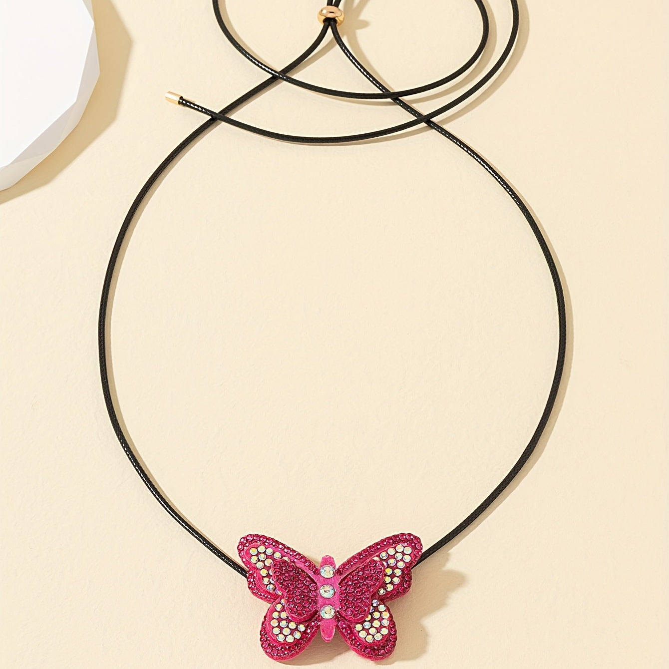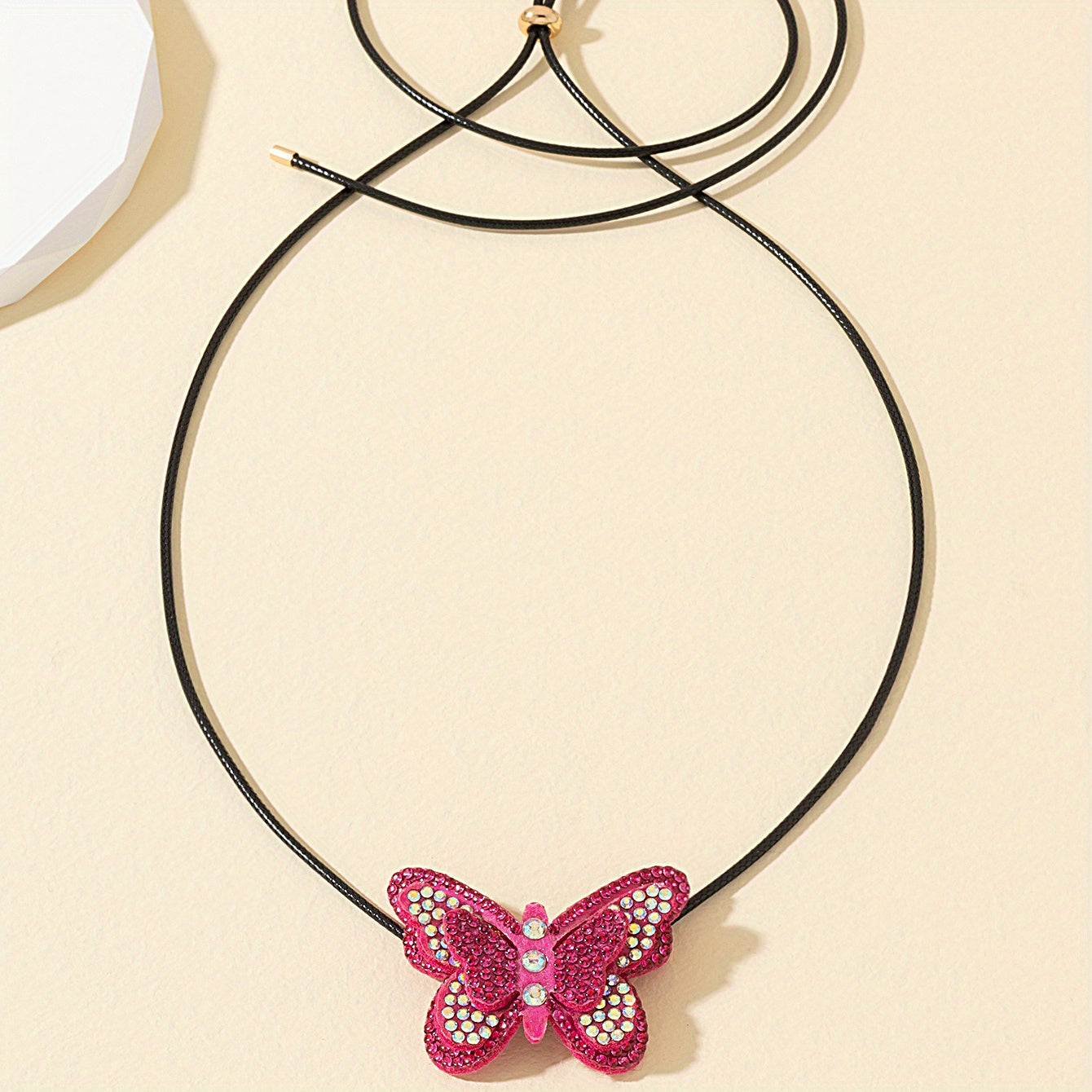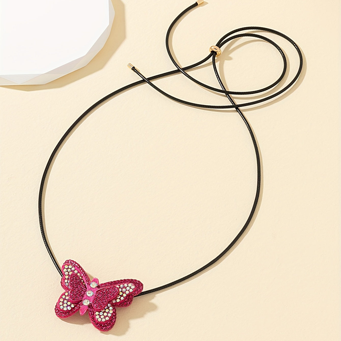 Add a touch of retro style to your outfit with this pink butterfly choker necklace, perfect for parties and special occasions.