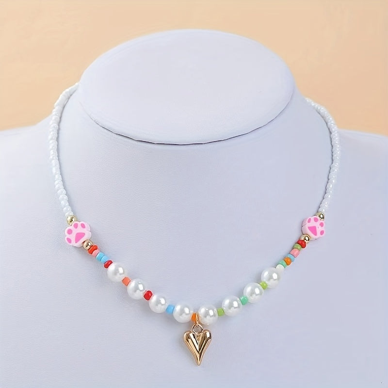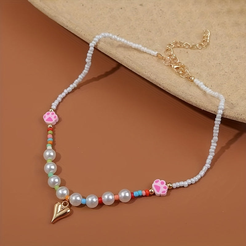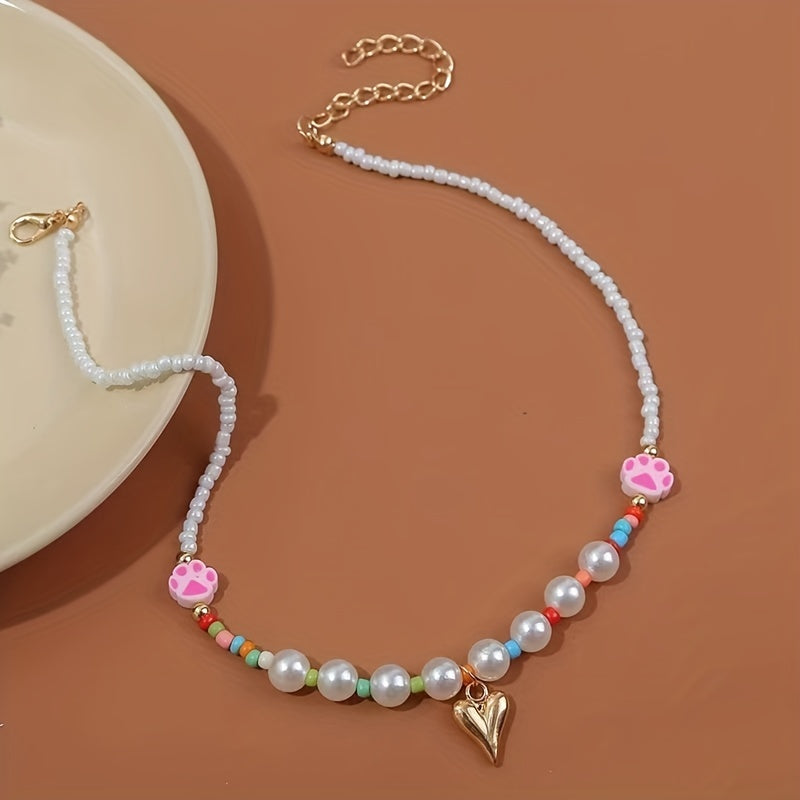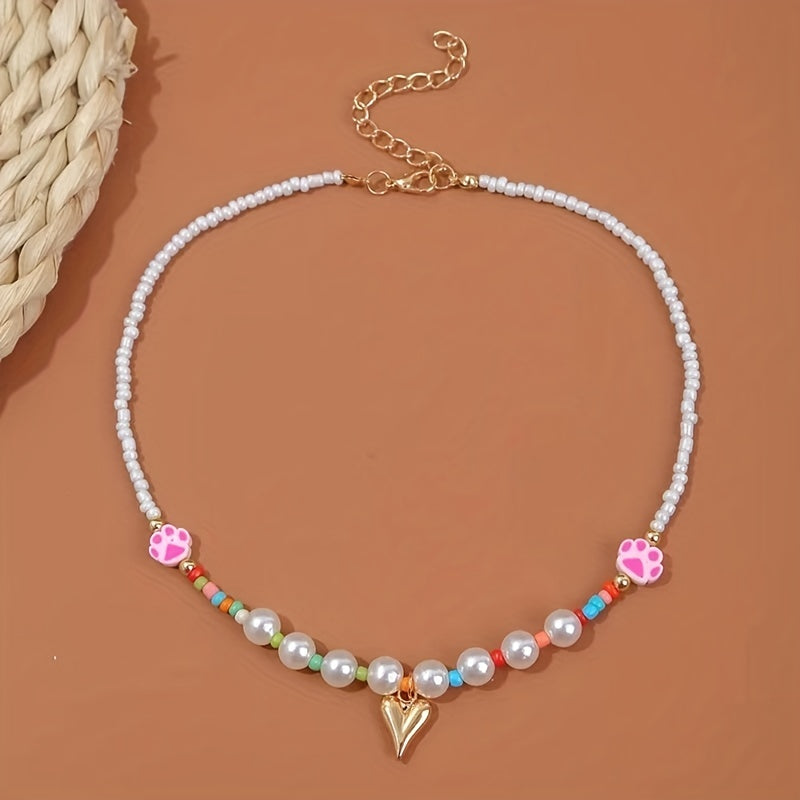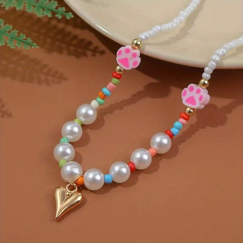 This charming pink claw necklace features faux pearl beads and is a perfect accessory for females. Show your love with this elegant piece of jewelry.