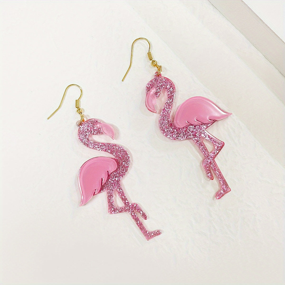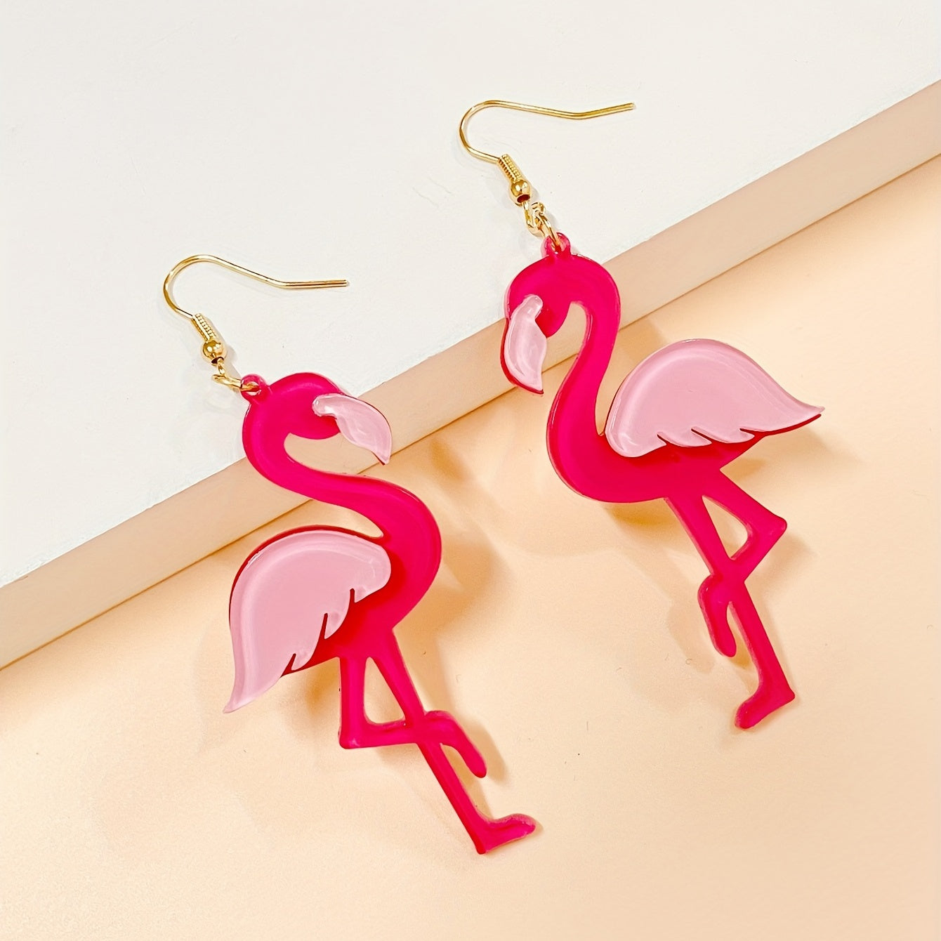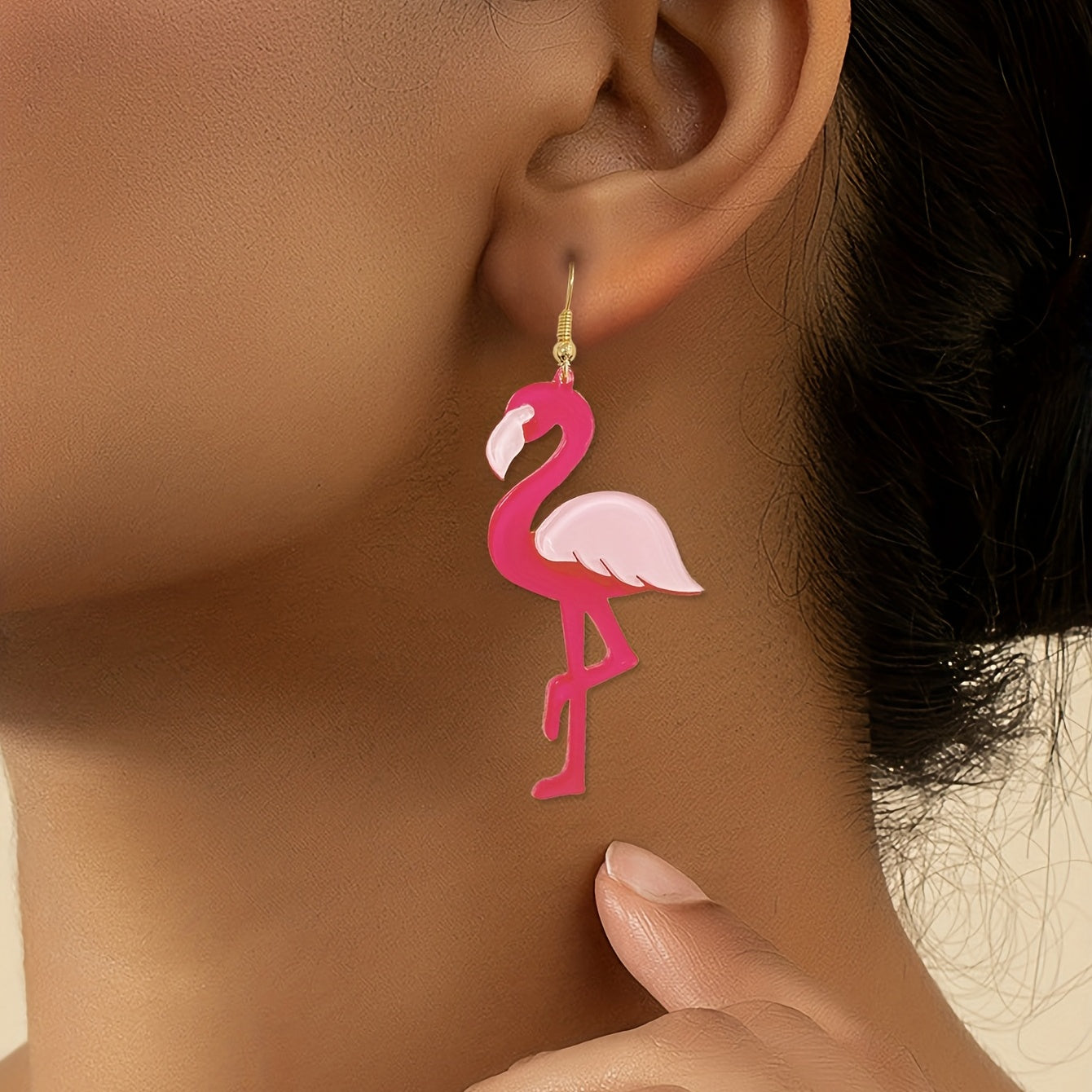 Add a touch of tropical flair to your look with these charming pink flamingo dangle earrings. Made of acrylic, these earrings are perfect for daily casual wear or as a creative gift for women and girls.