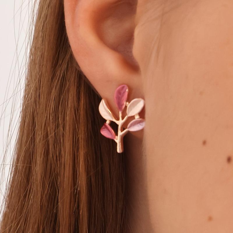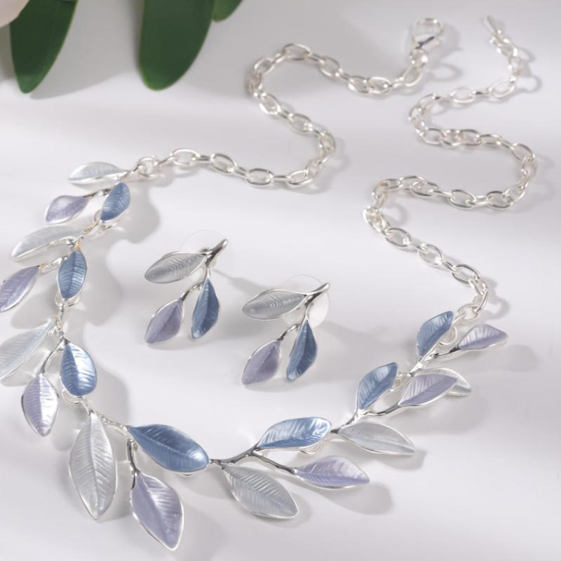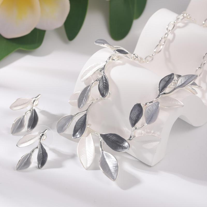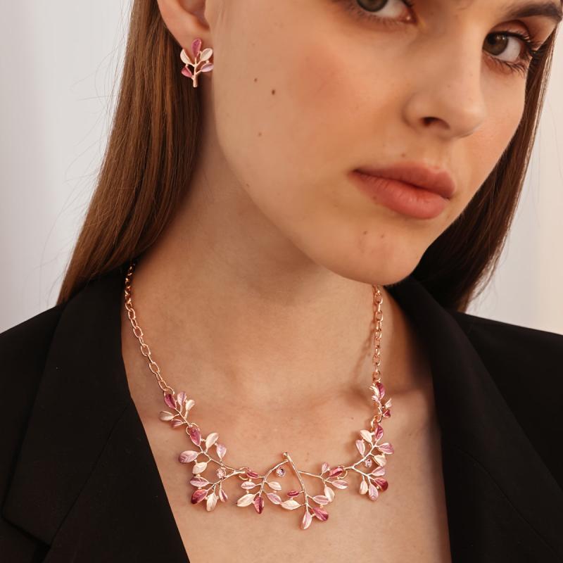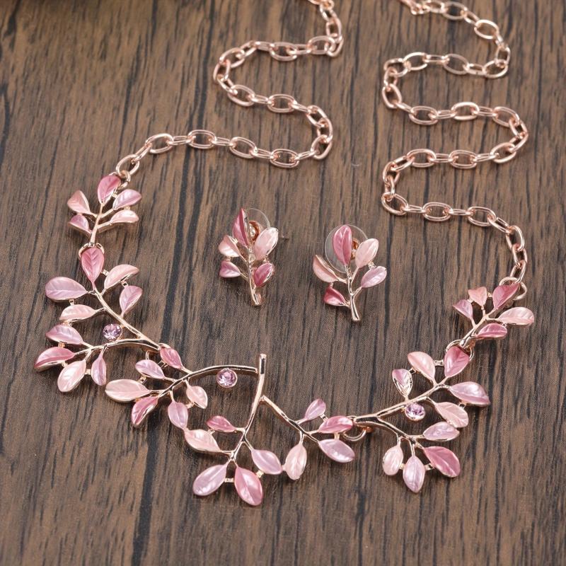Pink Leaf Jewelry Set French Party Gift Women Zinc Alloy Earrings Necklace