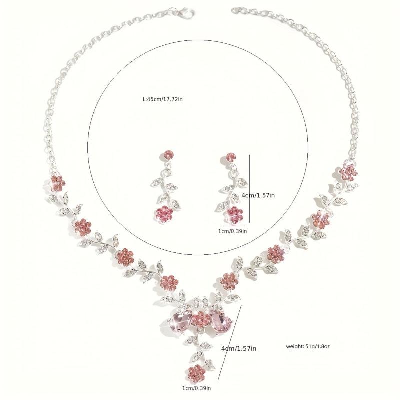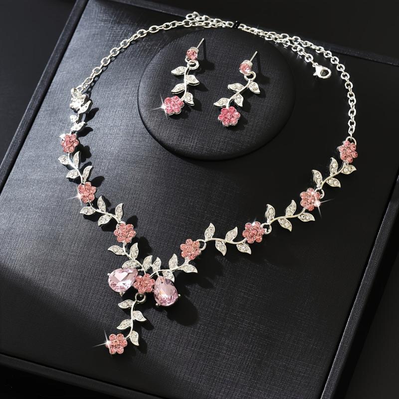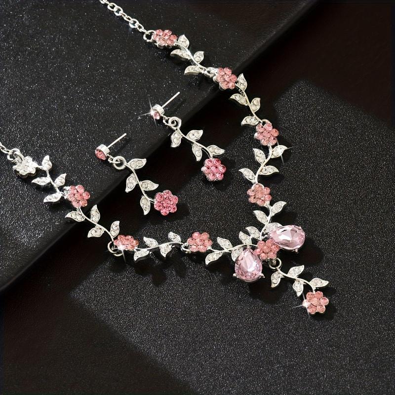 Complete your look for special occasions with this elegant 2-piece jewelry set featuring a pink necklace and matching pair of earrings.