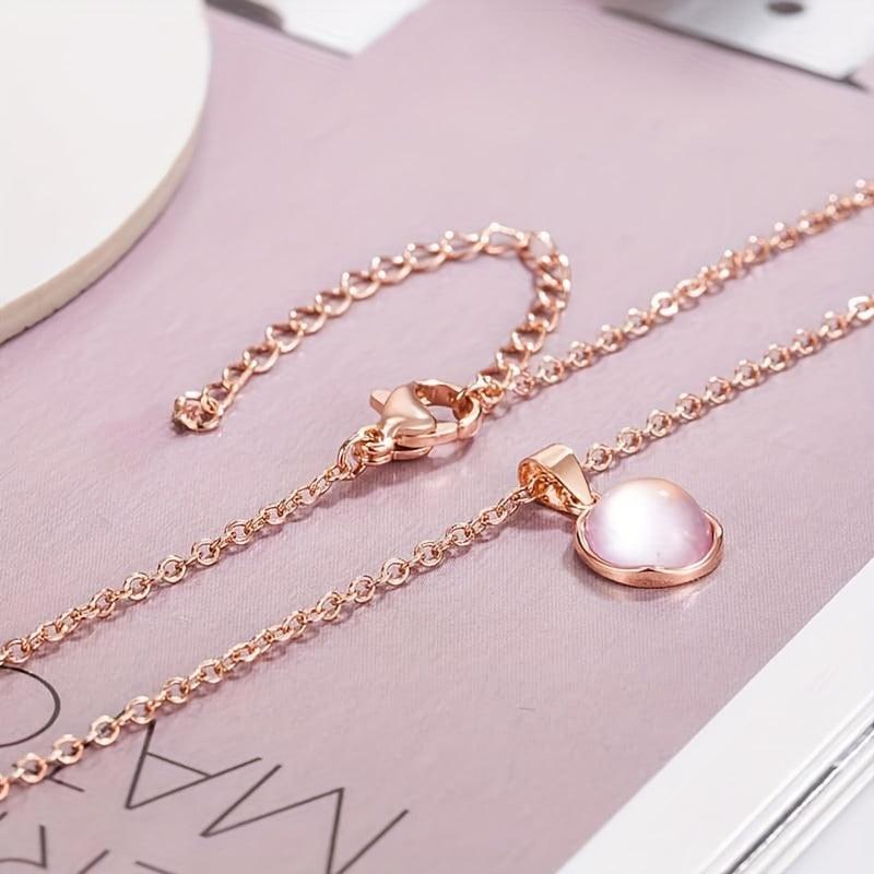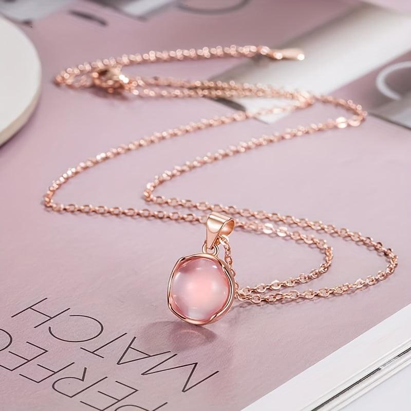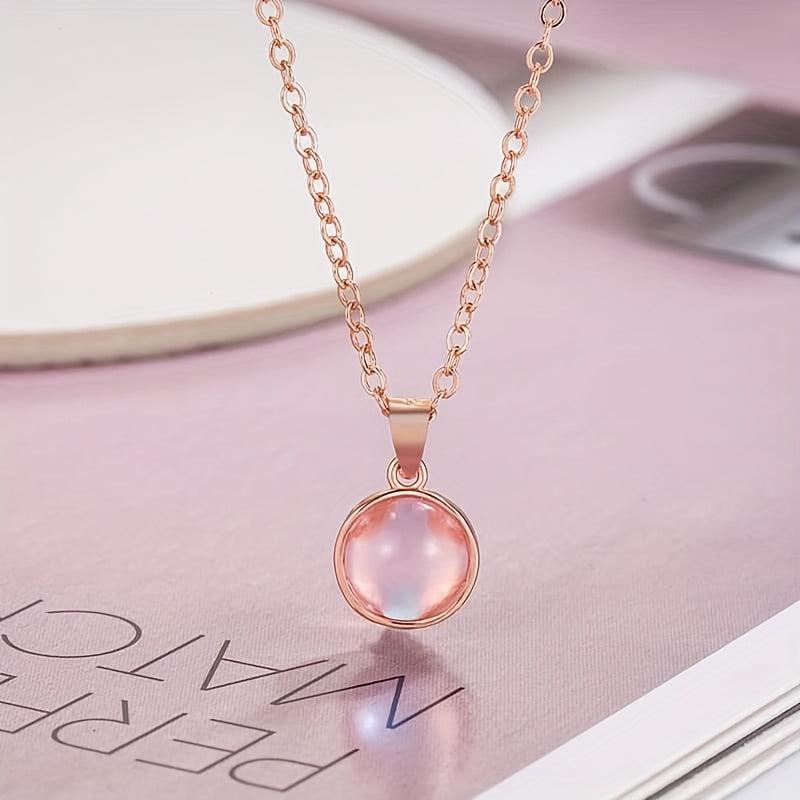 Add a touch of elegance to your casual attire with this delicate pink round pendant necklace. The golden tone O chain adds a chic look that is perfect for year-round wear. It also makes a versatile accessory and a thoughtful gift idea.