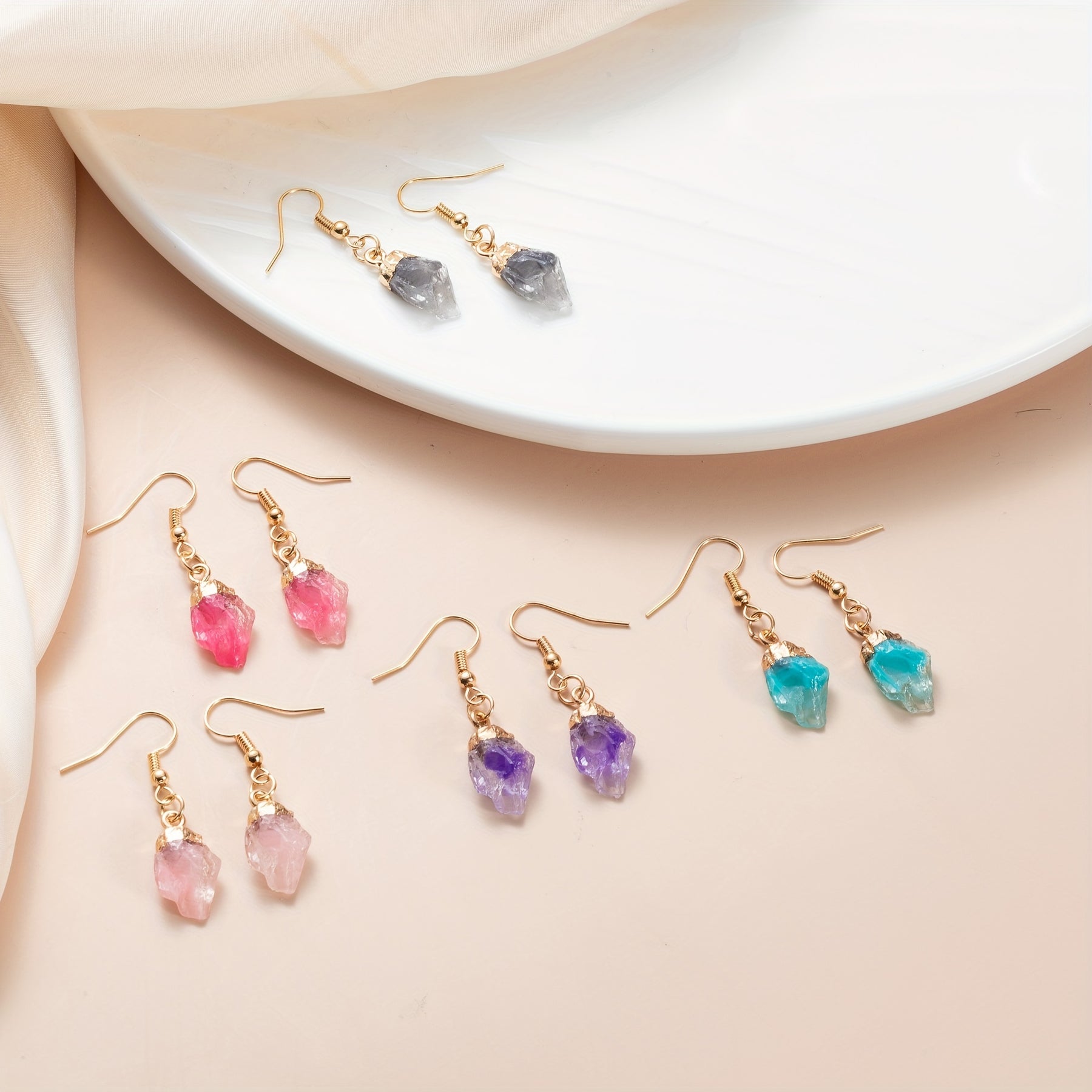 Add a touch of whimsical charm to your outfits with these pink irregular natural stone dangle earrings. Perfect for daily wear and accessorizing.