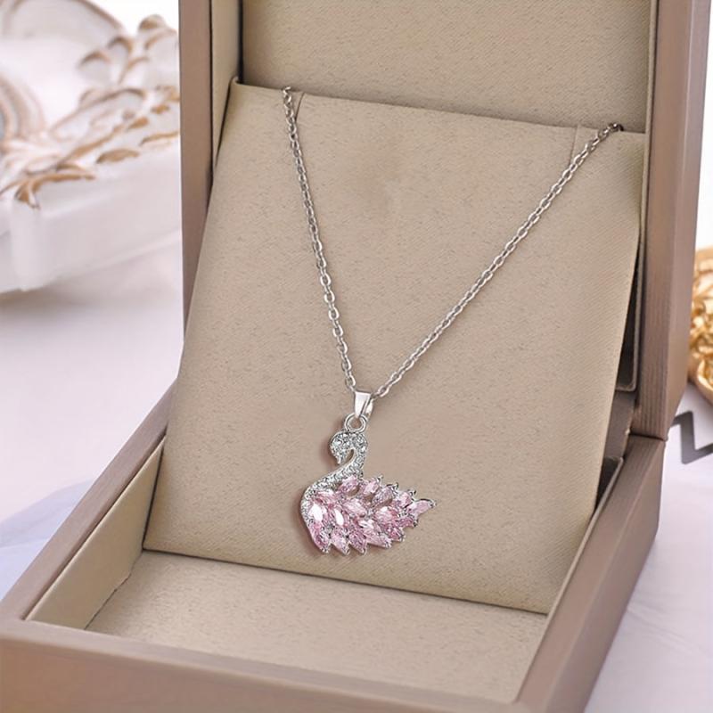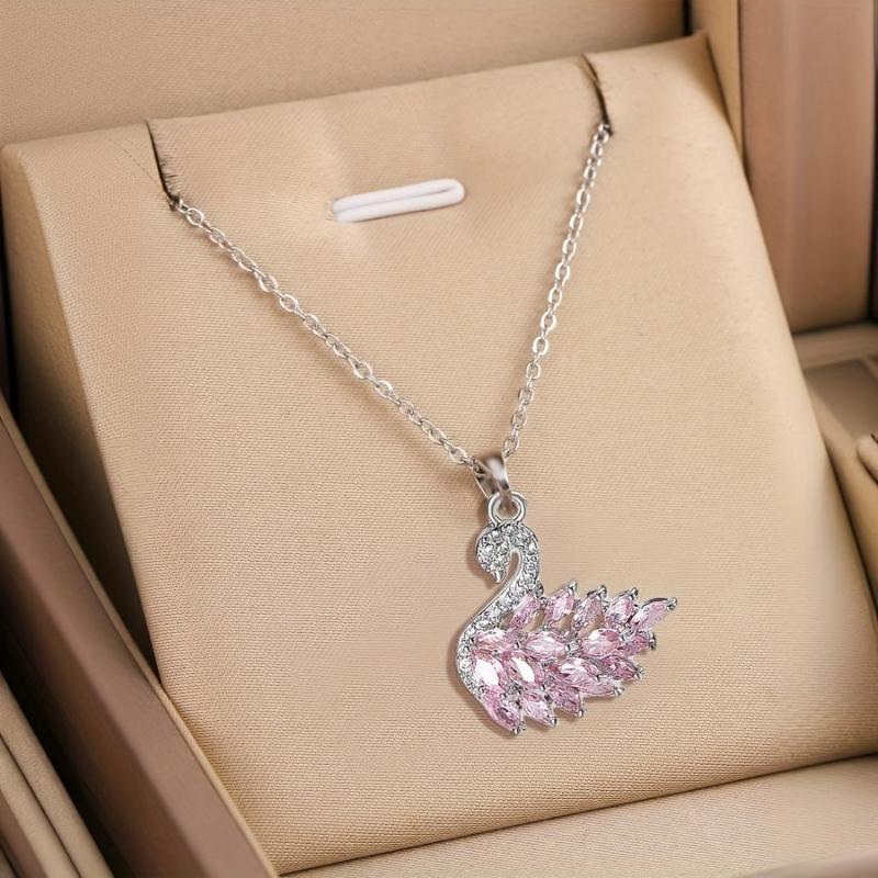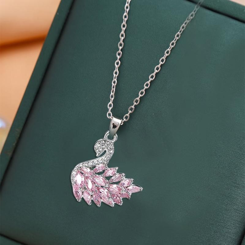 This pendant necklace features a pink synthetic zirconia embedded animals shape, perfect for adding a touch of charm to your outfit. Ideal gift for dating or special occasions.