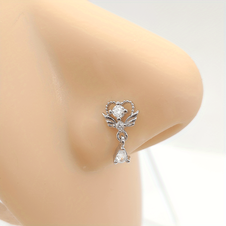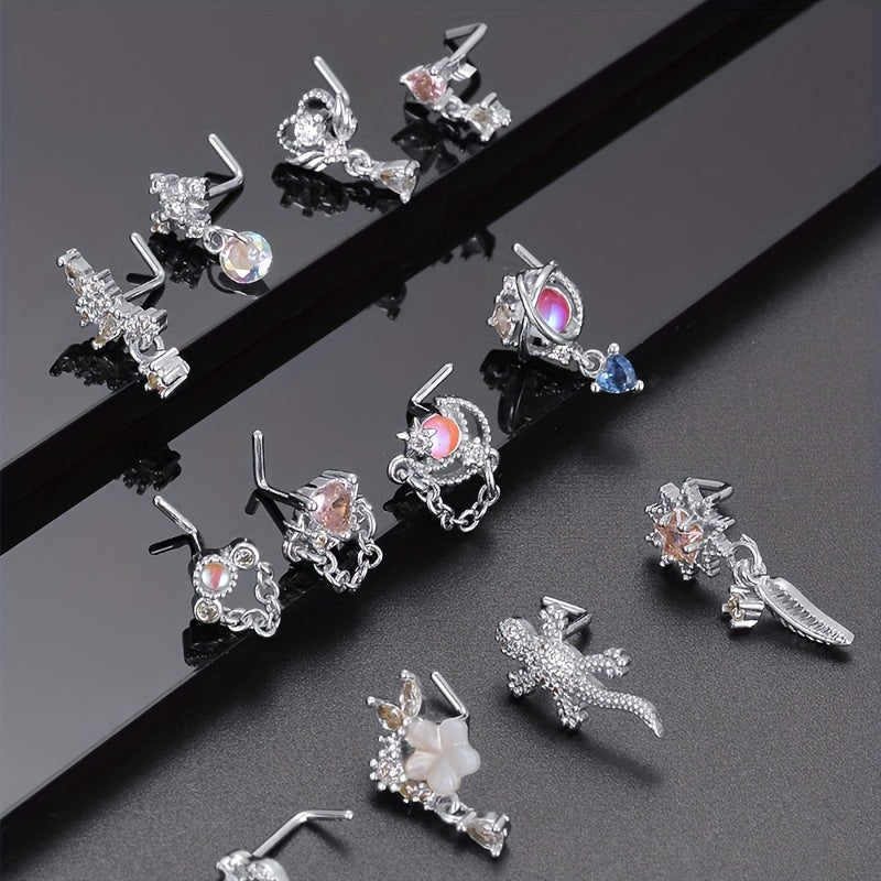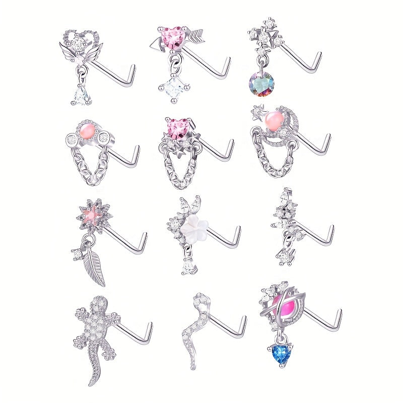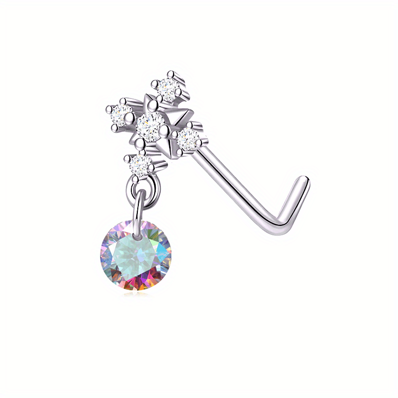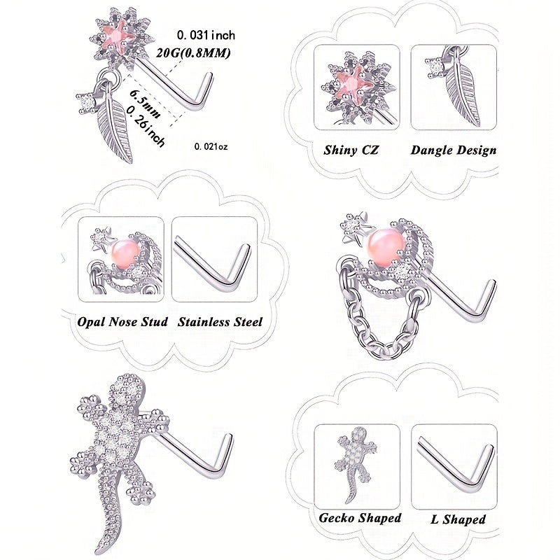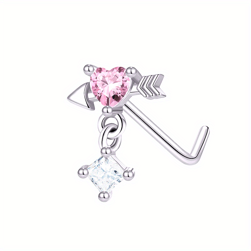 Enhance your style with this elegant Pink Zircon Inlaid L Rod Nose Nail Nostril Piercing Jewelry. Crafted with high-quality materials, it offers a stylish and unique accessory for your nose piercing.