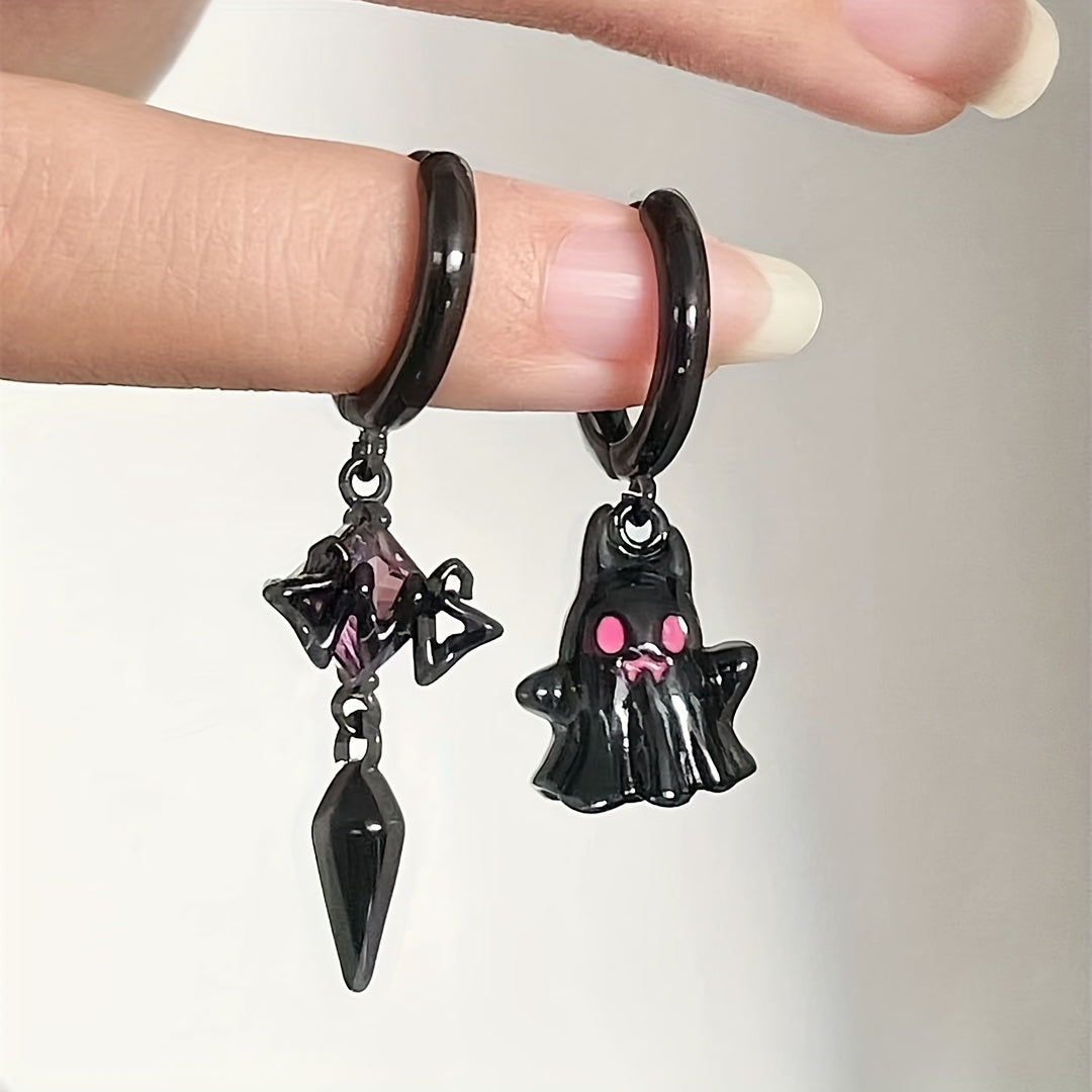 Add a touch of devilish charm to your look with these cute pink zircon pendant earrings. Perfect for the Y2K, Gothic, or Cyberpunk style, these alloy hoop earrings make a great gift for any female.
