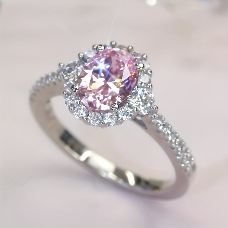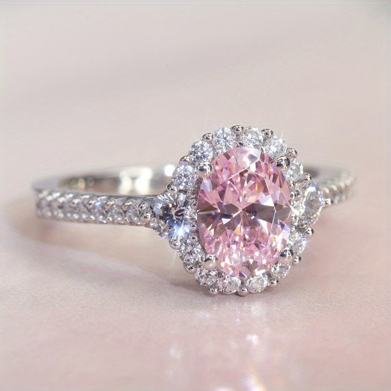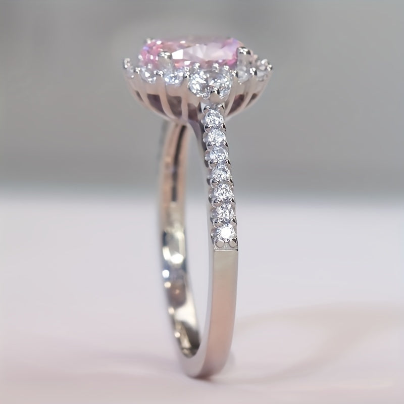 This promise ring features inlaid pink zircon, making it a stunning addition to any outfit. Ideal for daily wear or special occasions. Surprise your girl with a thoughtful gift.