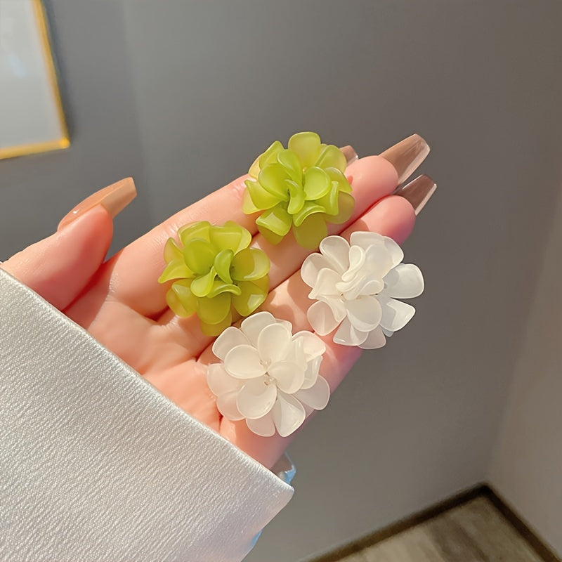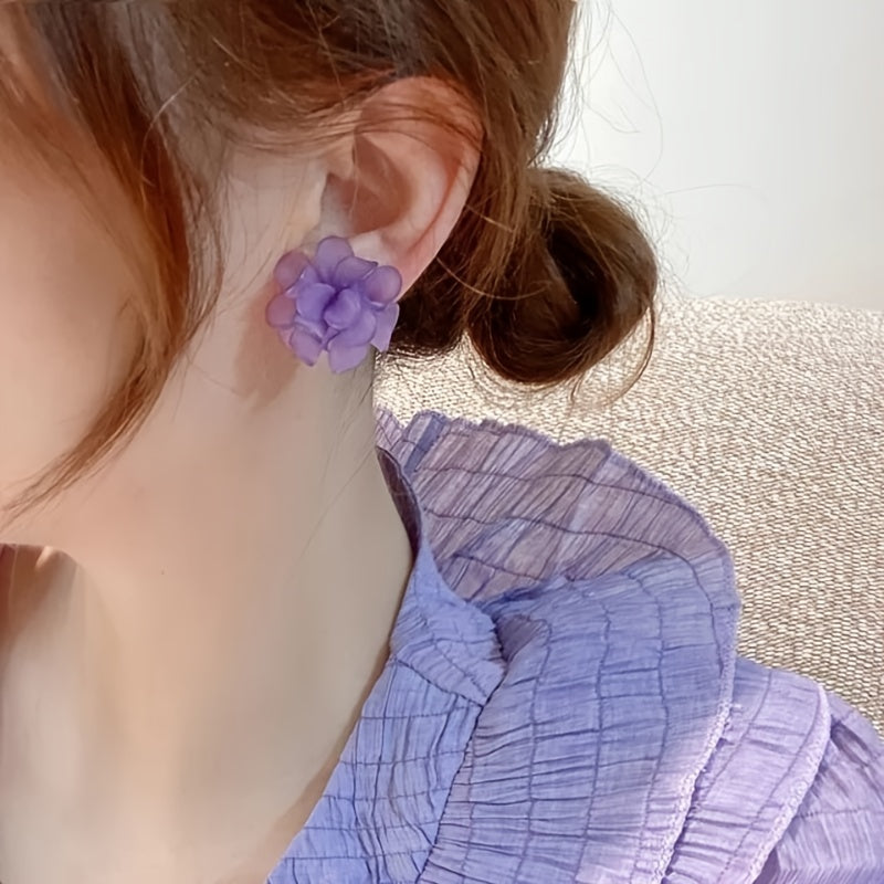 Add a touch of delicate floral charm to your summer look with these plastic flower stud earrings. Perfect accessory for women and girls during beach vacations.