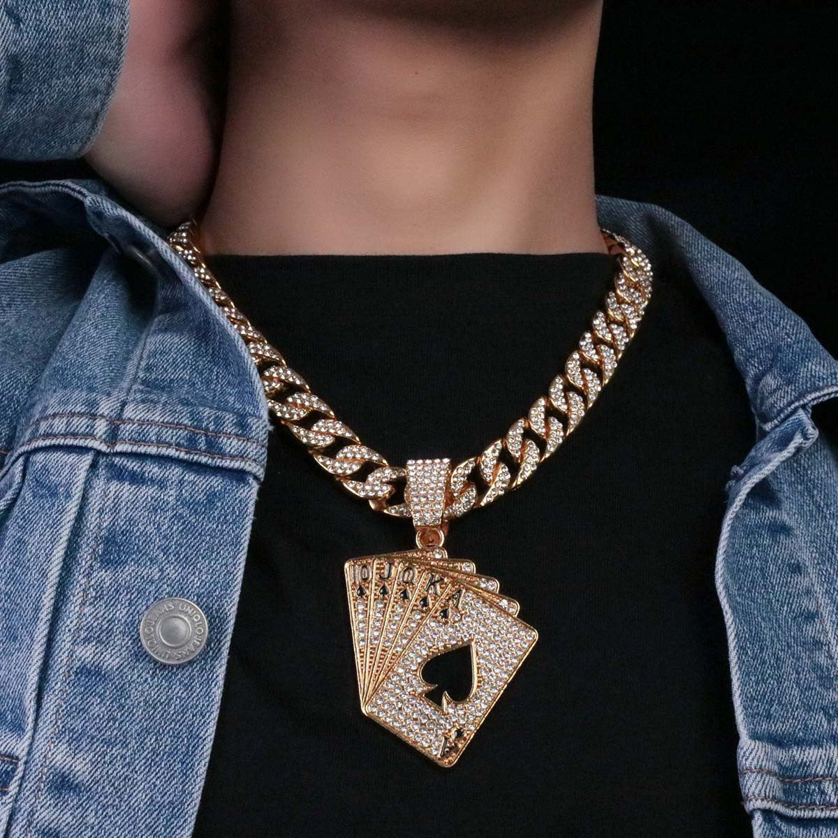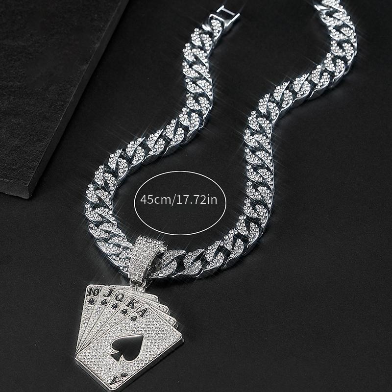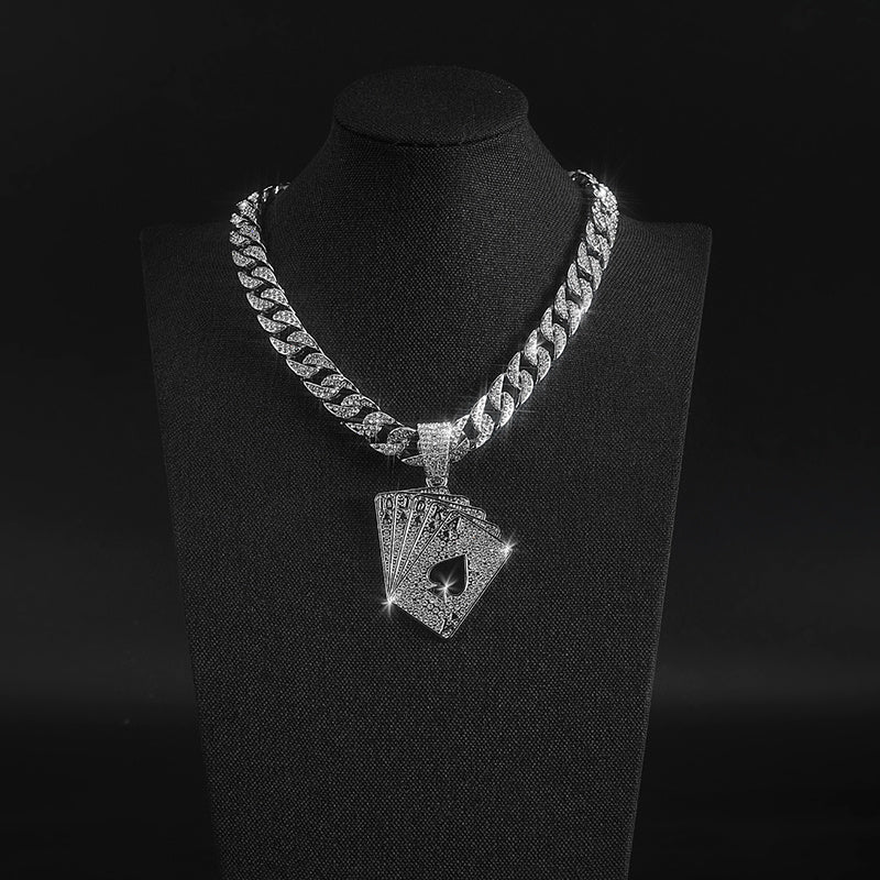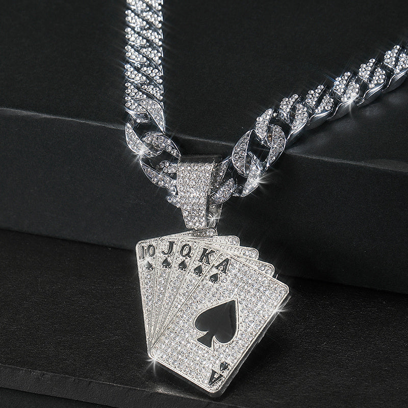 Elevate your style with this Poker Pendant Cuban Link Necklace, perfect for poker enthusiasts.