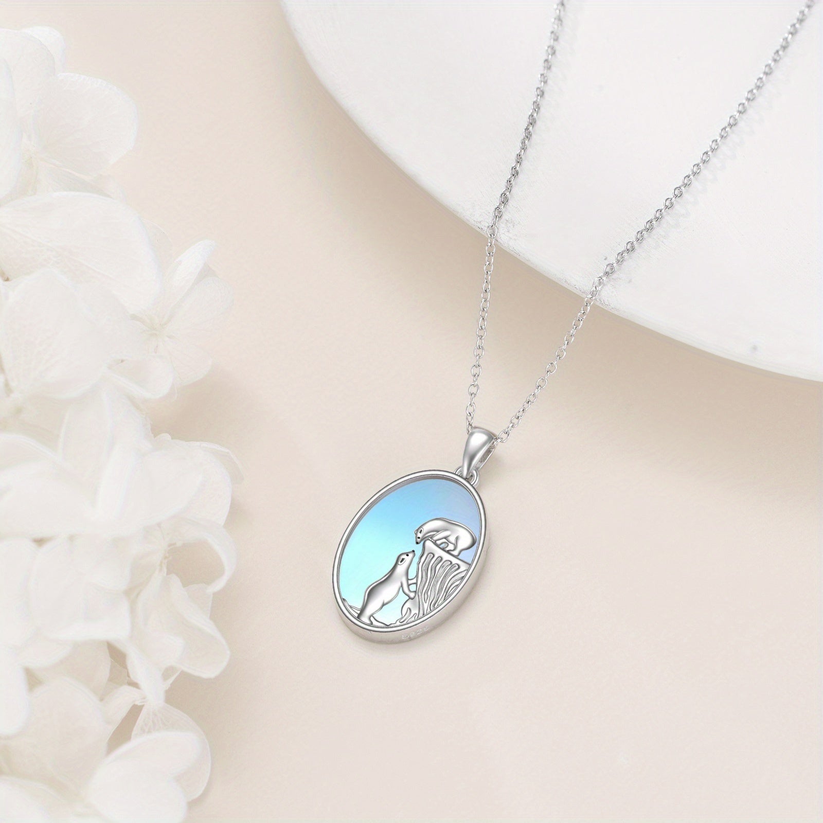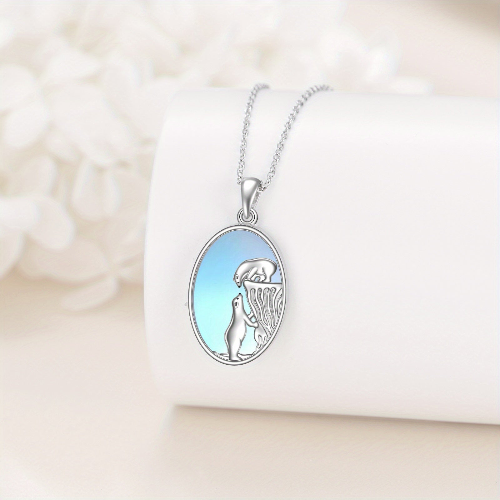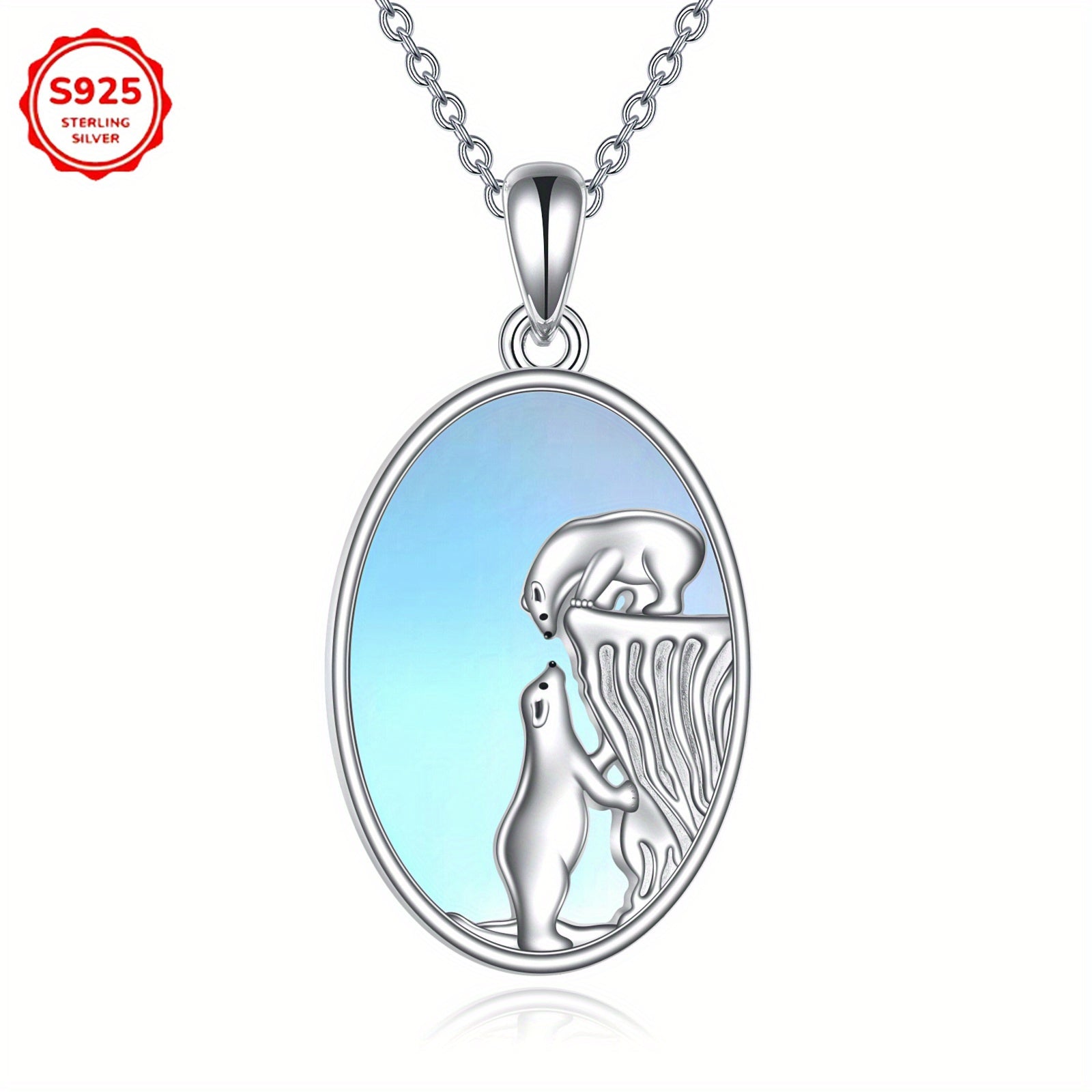 This stunning sterling silver necklace features a polar bear charm and a moonstone pendant. It makes a perfect gift for birthdays, anniversaries, or to show appreciation.
