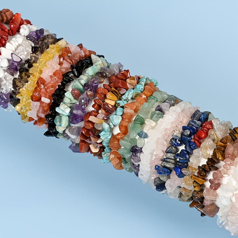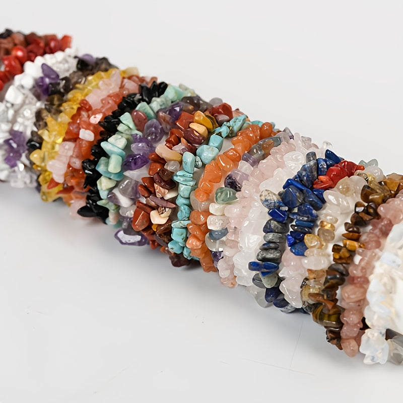 Add a touch of natural beauty to your attire with this charming powder crystal bracelet made of mixed irregular gravel stones.