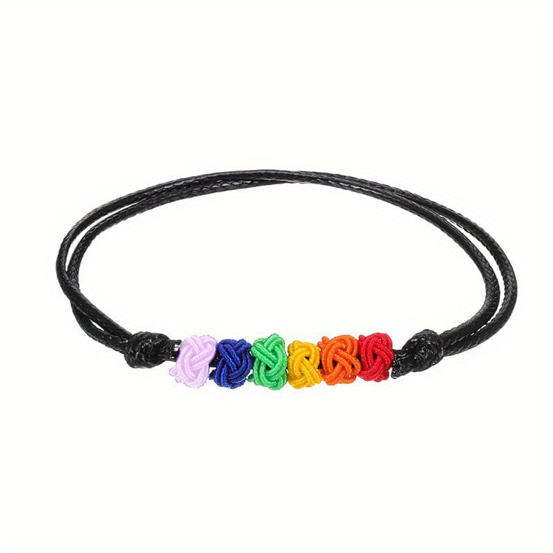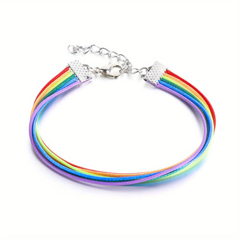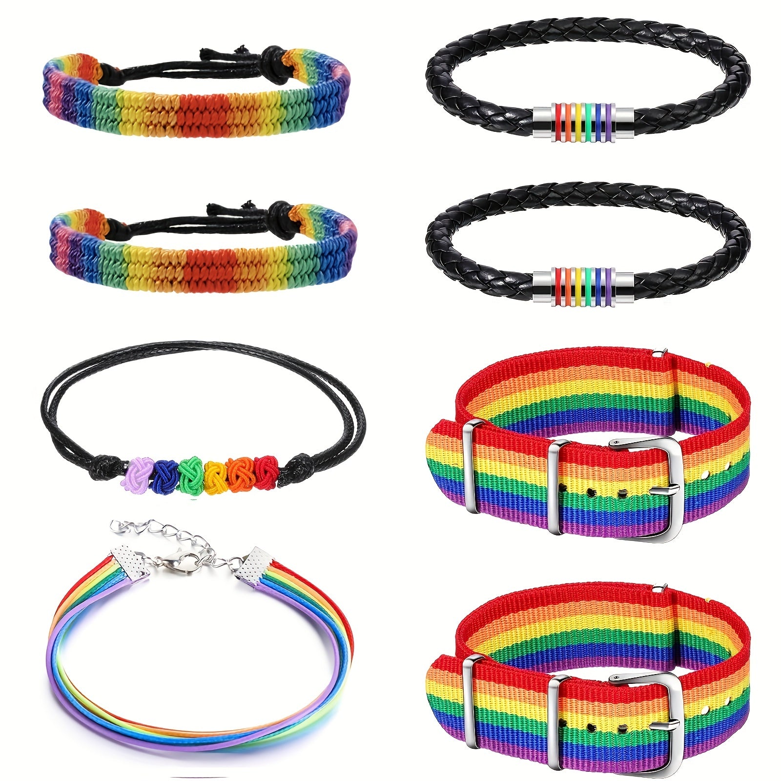 Celebrate Pride Month with these colorful rainbow bracelets that feature a braided design. Show your support for the LGBTQ+ community with these adjustable wristbands. Perfect for couples or friends who want to display their pride!
