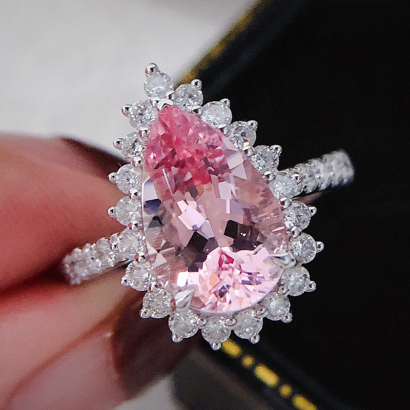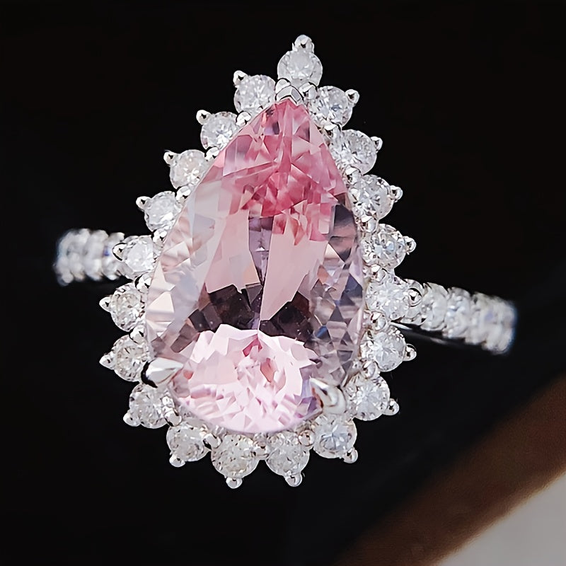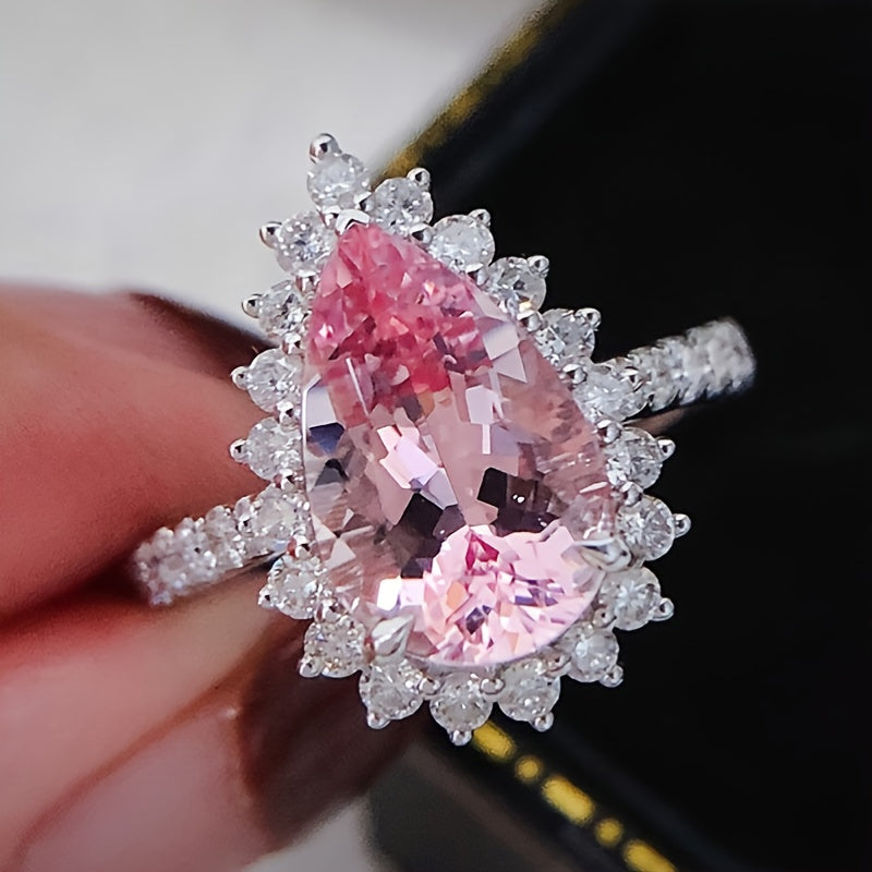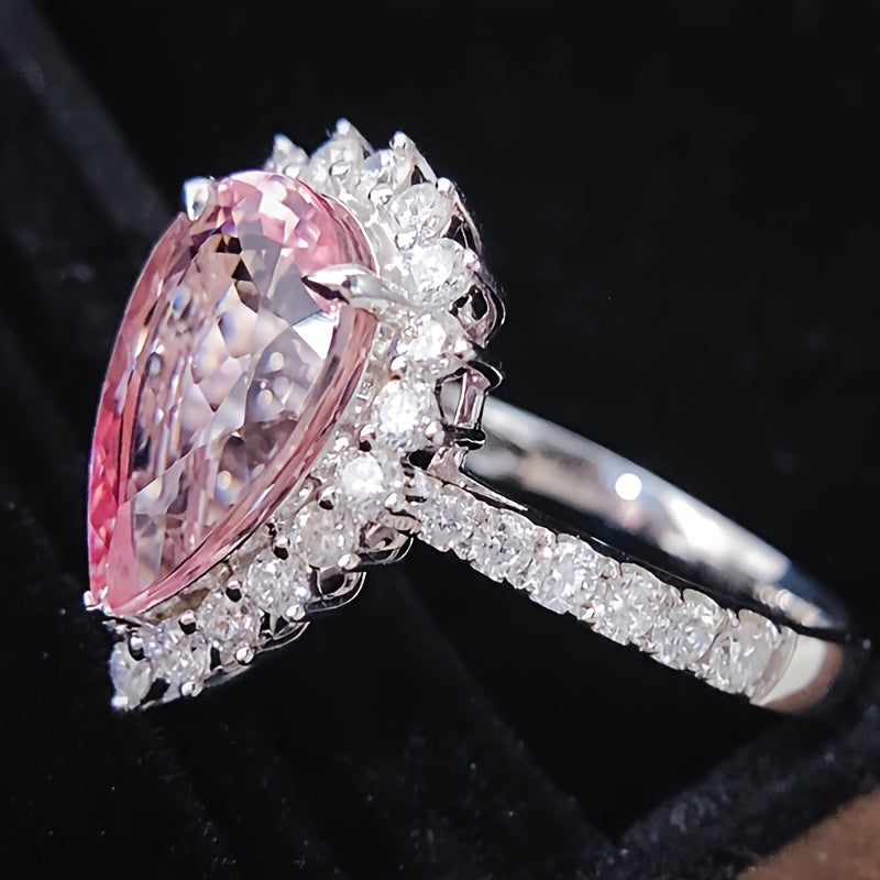 Make your engagement special with this romantic pink crystal cubic zirconia princess ring. It's a stunning jewelry piece for the lady of your dreams.