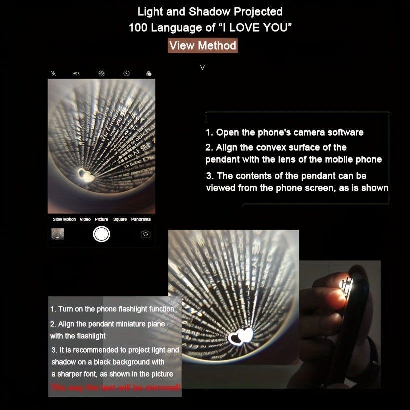 Express your love with this romantic accessory featuring a pendant that projects 'I Love You' in 100 languages. Perfect gift for your lover, girlfriend, or couple.