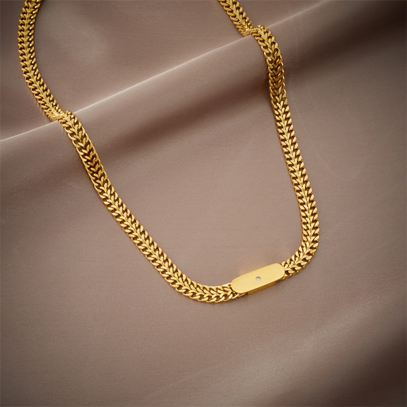 This trendy Punk Stainless Steel Golden Necklace is perfect for men and women who love street hip hop style.