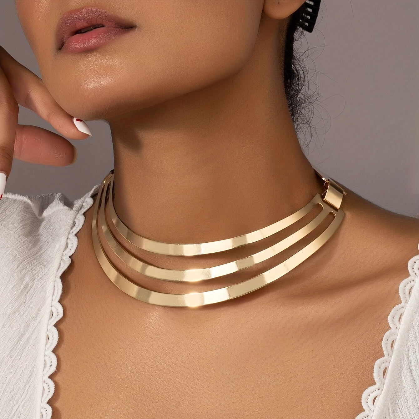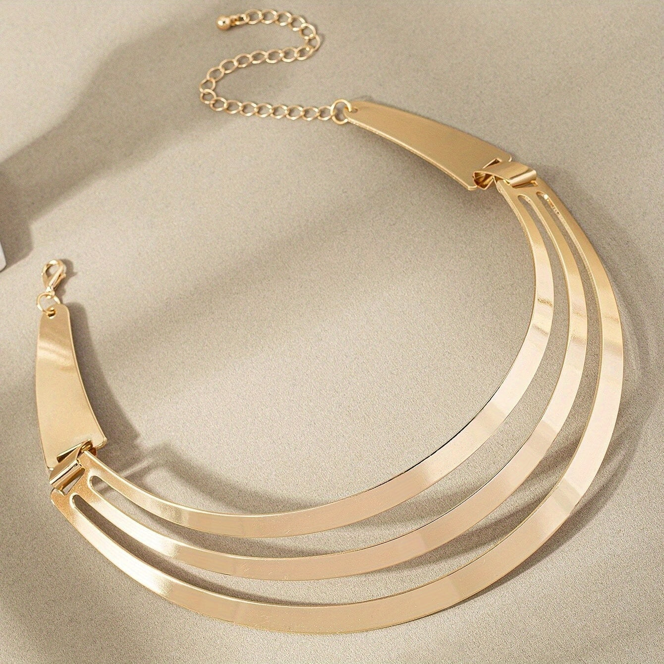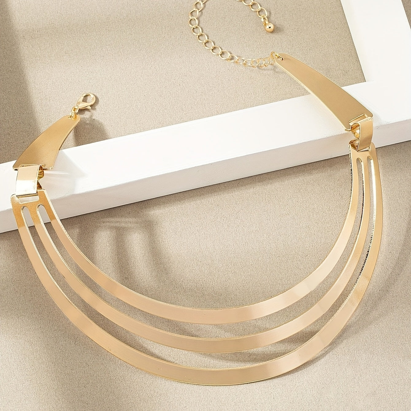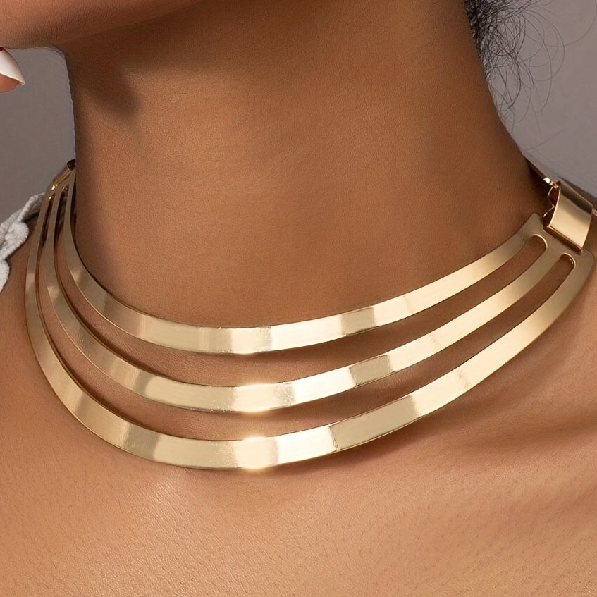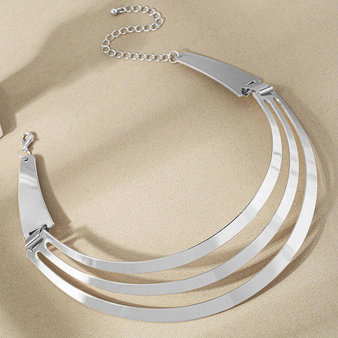 Add a touch of punk to your outfit with this glossy collar necklace featuring a sexy clavicle chain design.