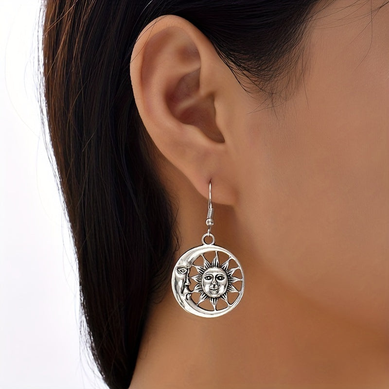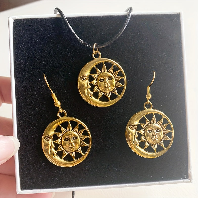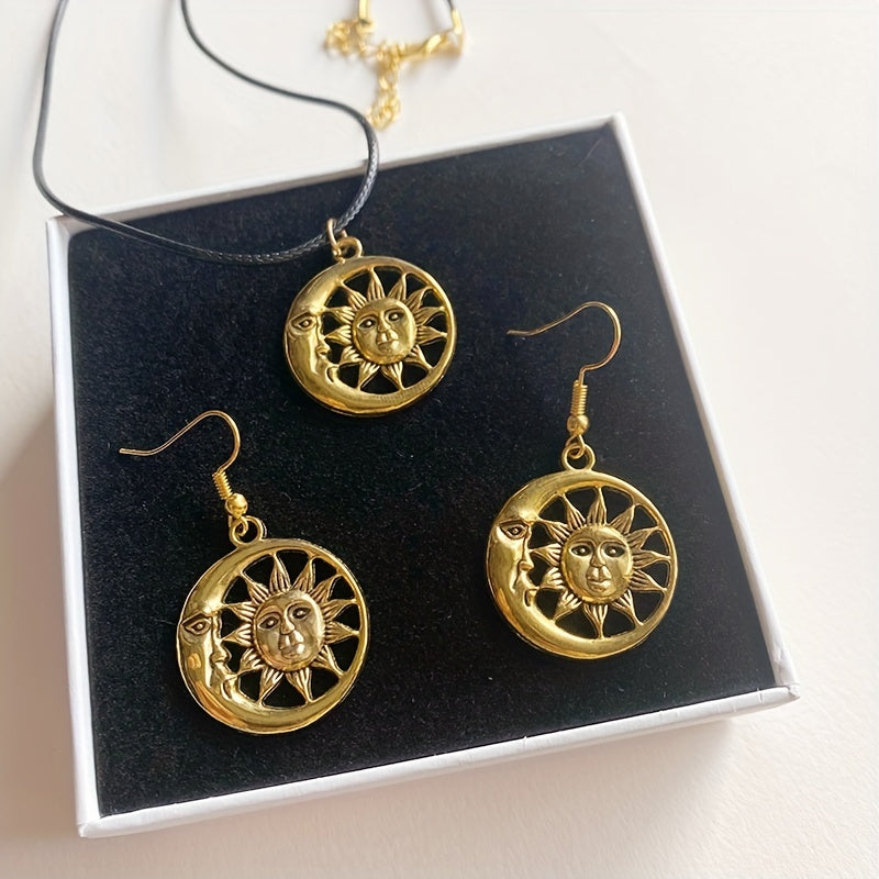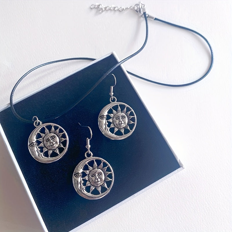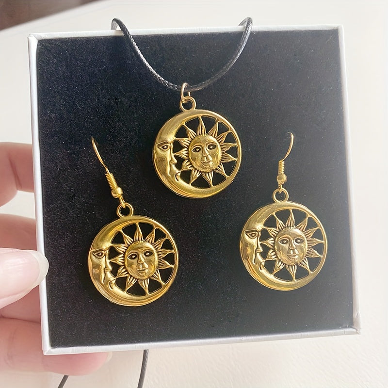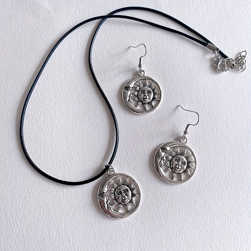 Elevate your daily outfits with this 3pcs earrings plus necklace set featuring a moon and sun pattern. Perfect for girls who love punk style jewelry.