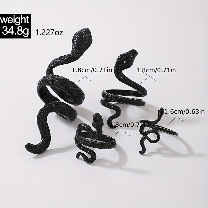 Add a touch of punk style with this 4-piece snake finger ring set. The stackable design and exaggerated look make it great for Halloween or everyday wear.