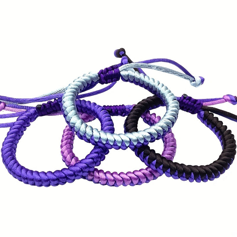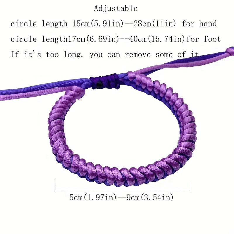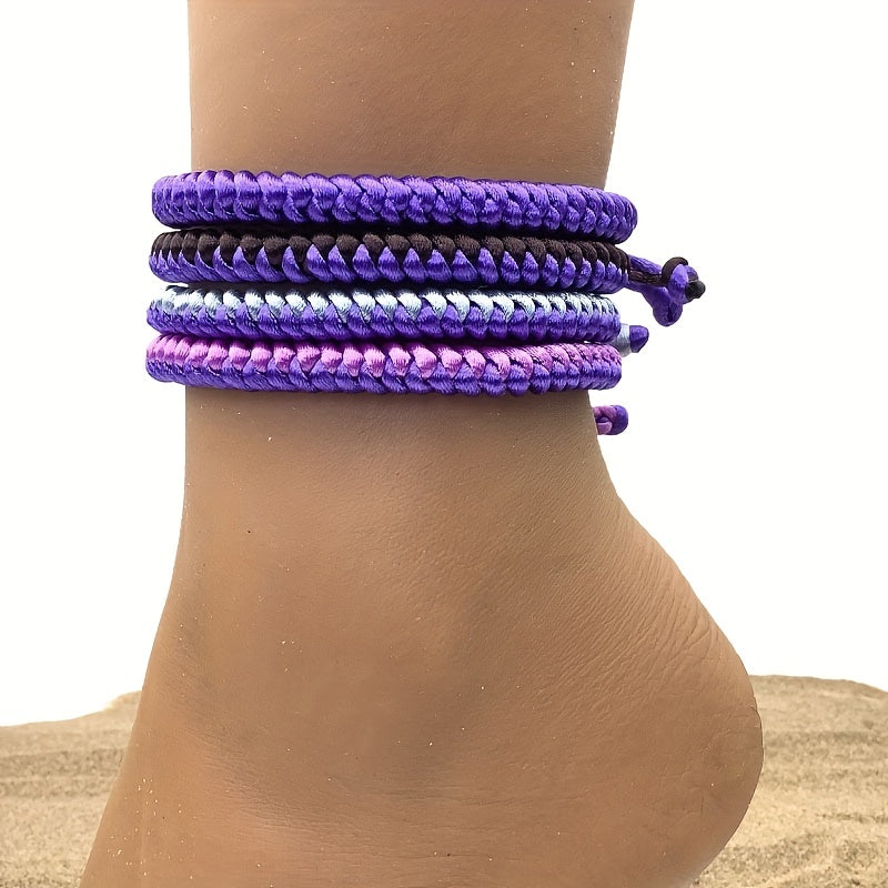 This braided ankle bracelet in purple series is designed to ward off bad luck. It features lucky knots and is perfect for daily wear.