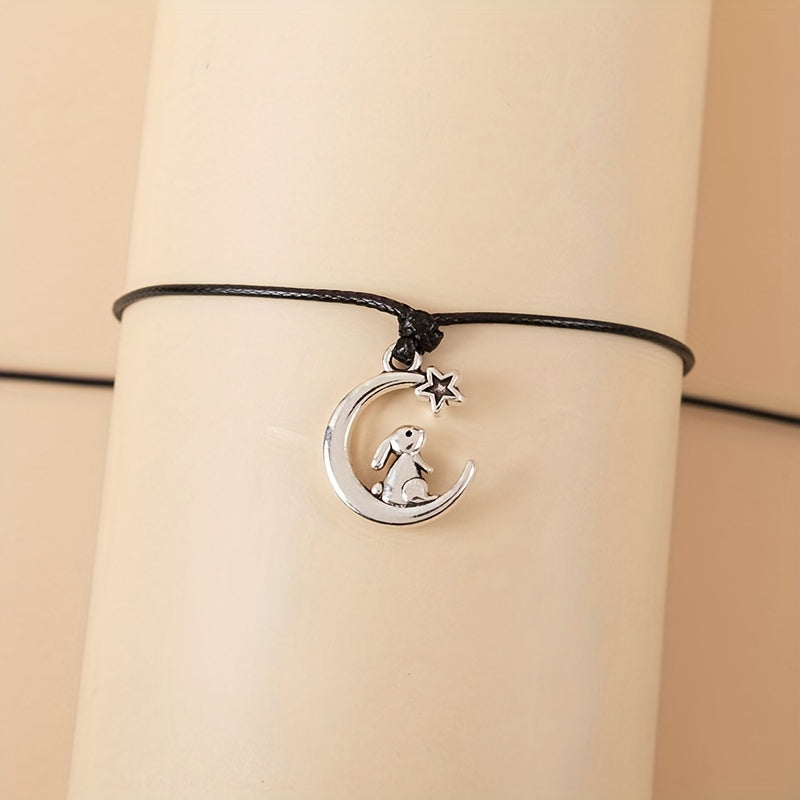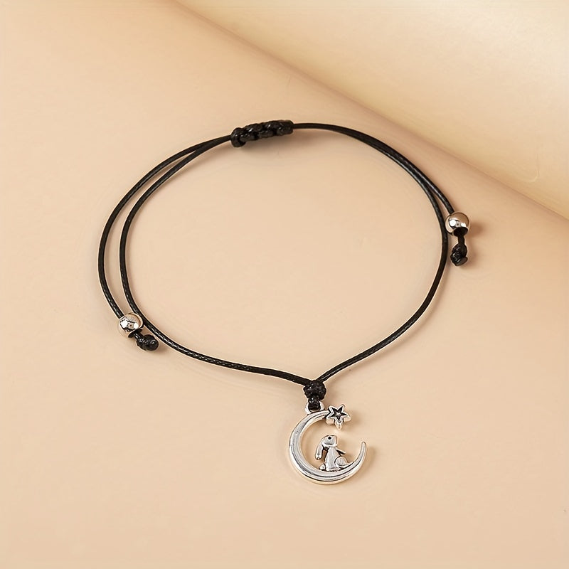Add a touch of Easter charm with this Rabbit Moon Braided Bracelet. Adorn your hand with this adjustable hand jewelry that serves as a festive decoration. Perfect for Easter celebrations!