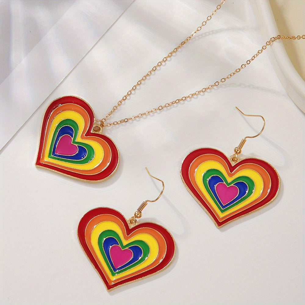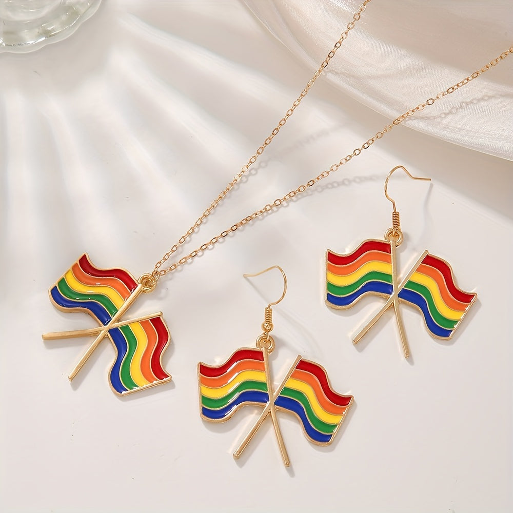 Add a pop of color to your outfit with this preppy jewelry set featuring a rainbow flag design. Perfect for daily wear or as a thoughtful gift for teen girls.