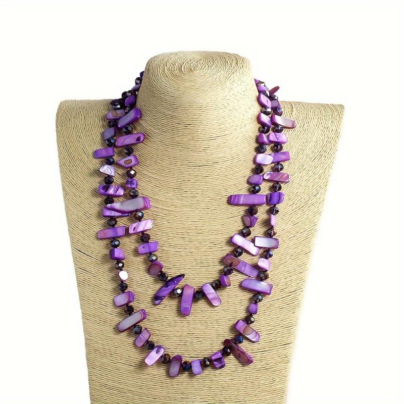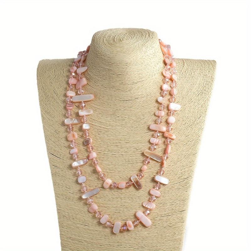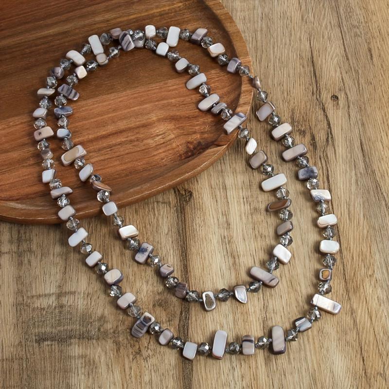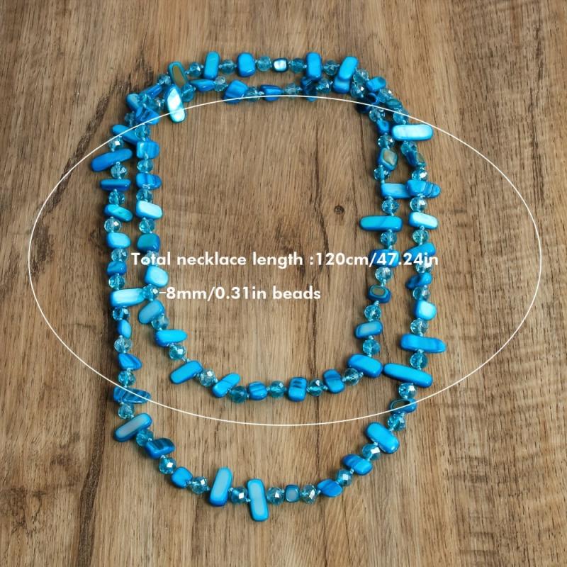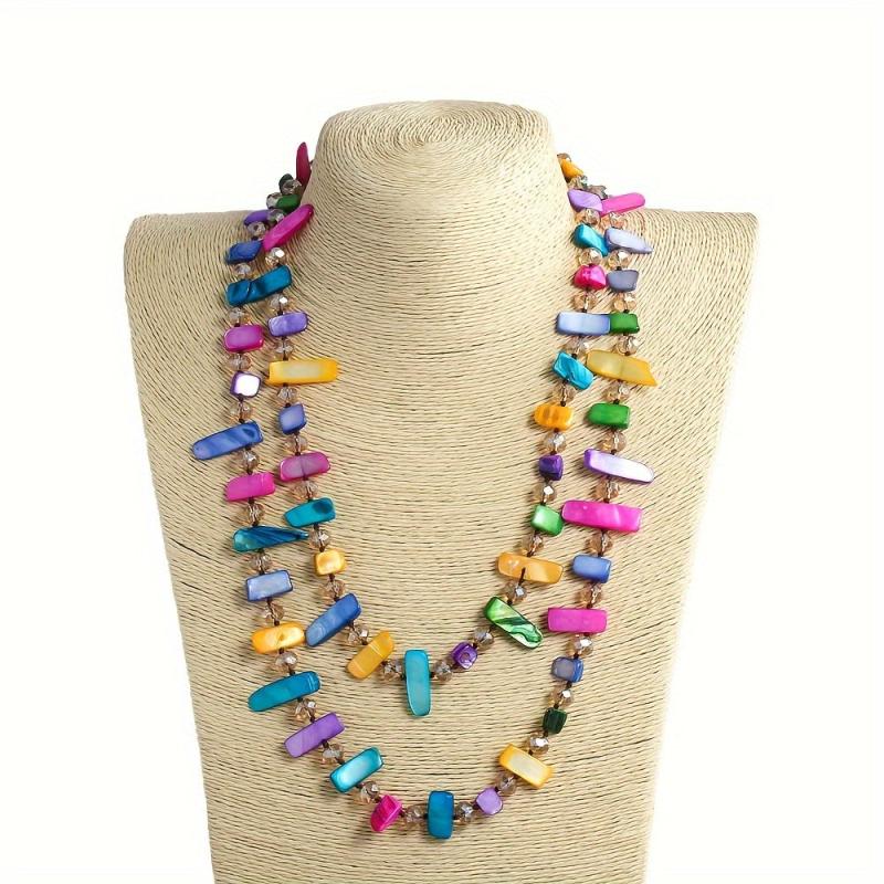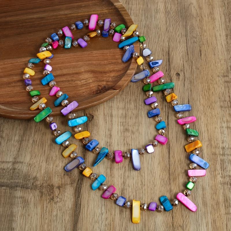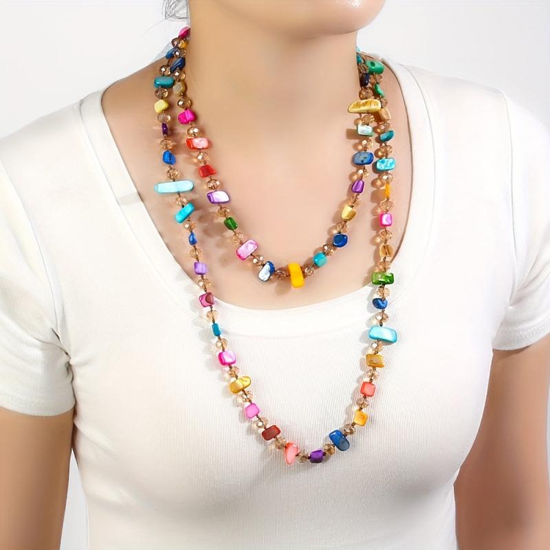 Elevate your vacation style with this long beaded necklace featuring rainbow-colored glass beads. A creative and fashionable gift for sweater lovers.
