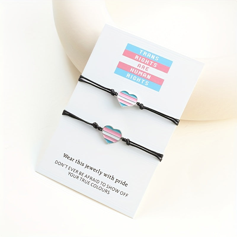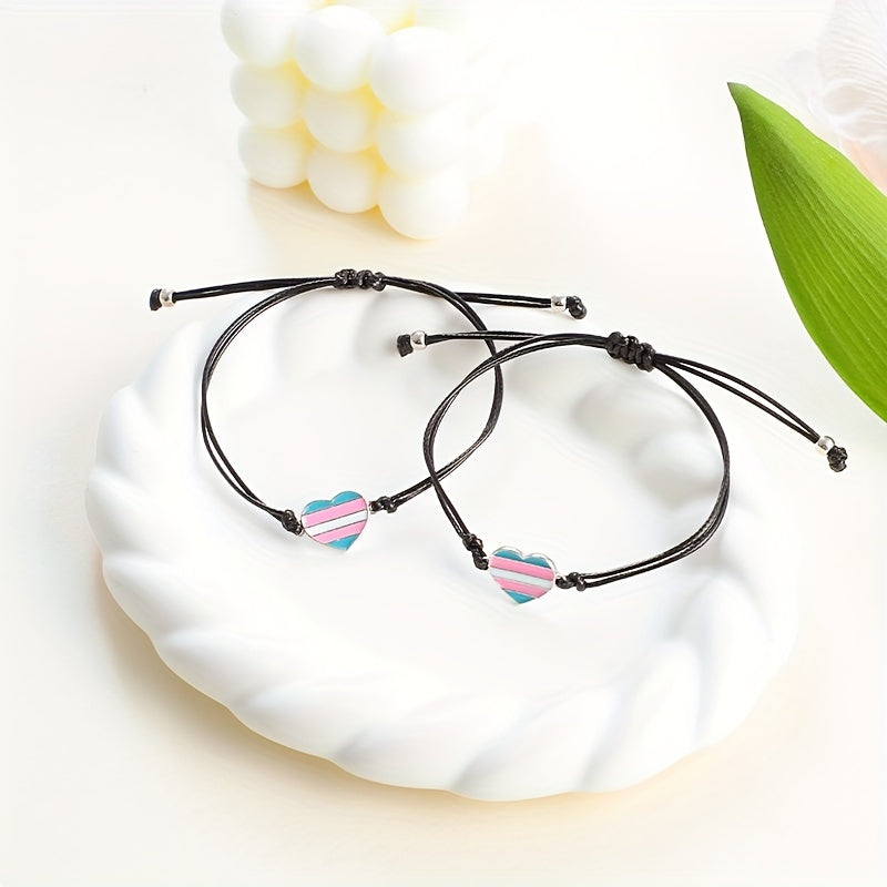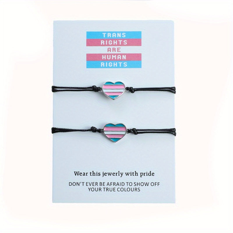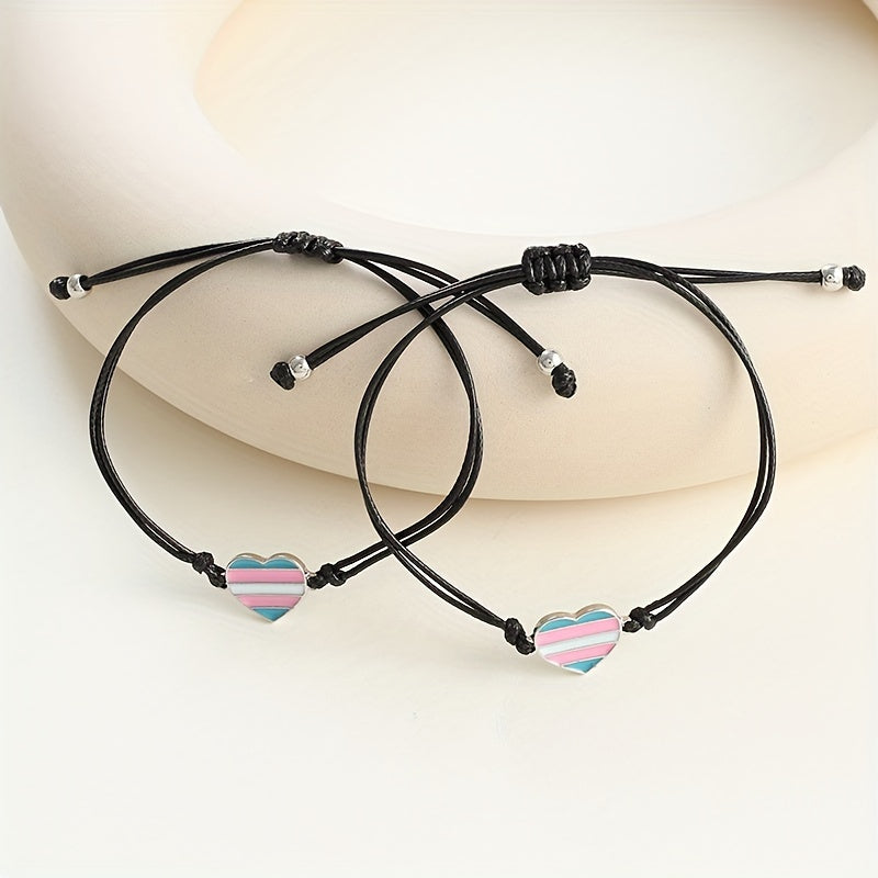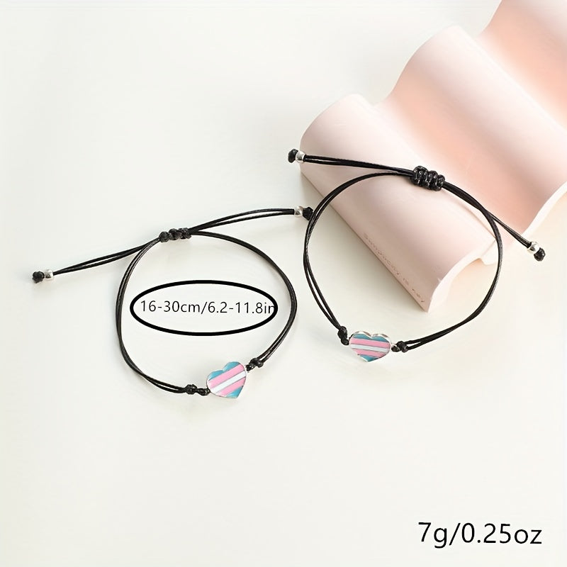 Celebrate LGBT Pride Month with this couple bracelet set featuring rainbow love heart design. Made with PU leather and braided for a unique look.
