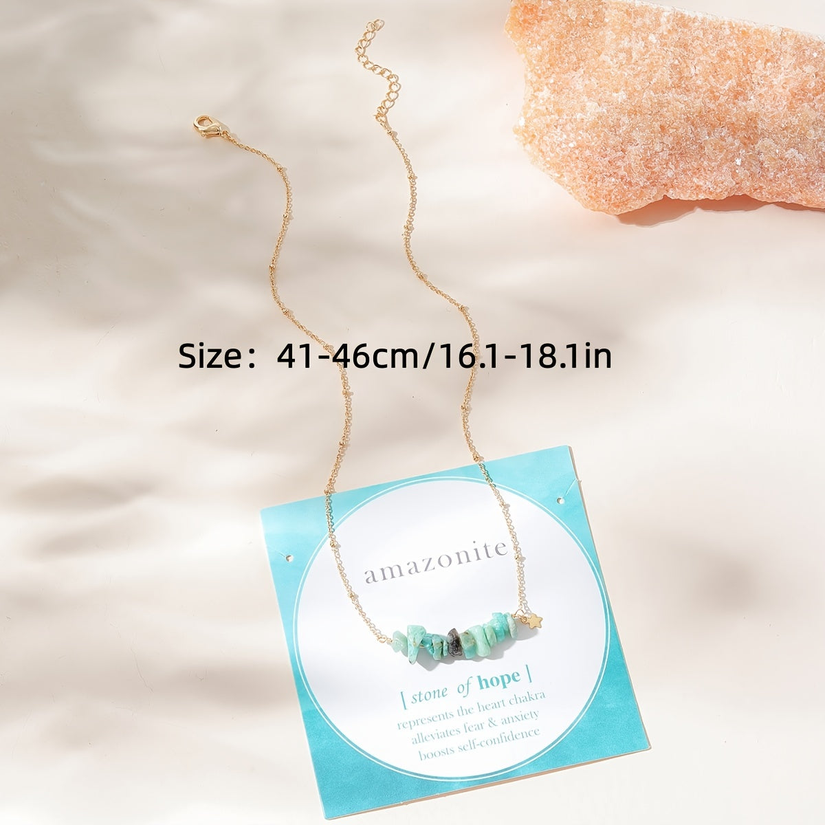 This beautiful short necklace features natural raw stone amazonite, amethyst, and pink crystal, making it a perfect gift for women, moms, wives, girls, or any special person in your life.