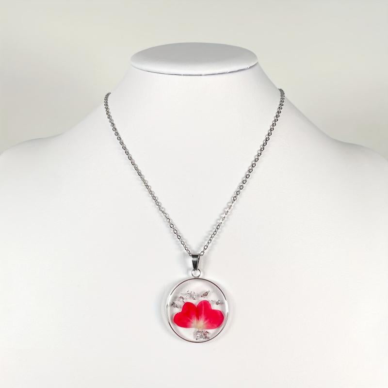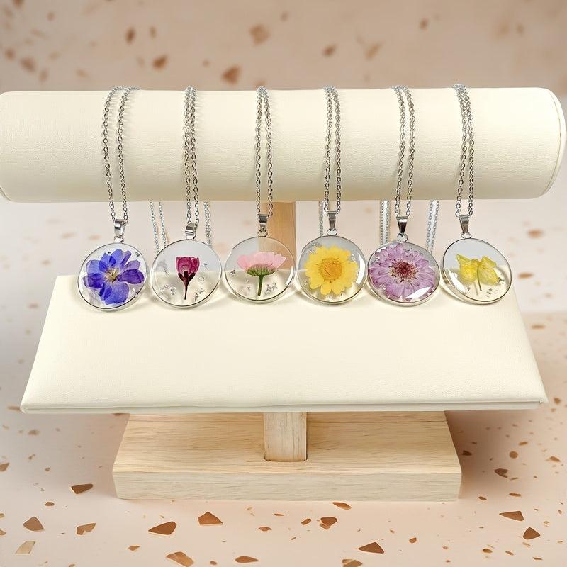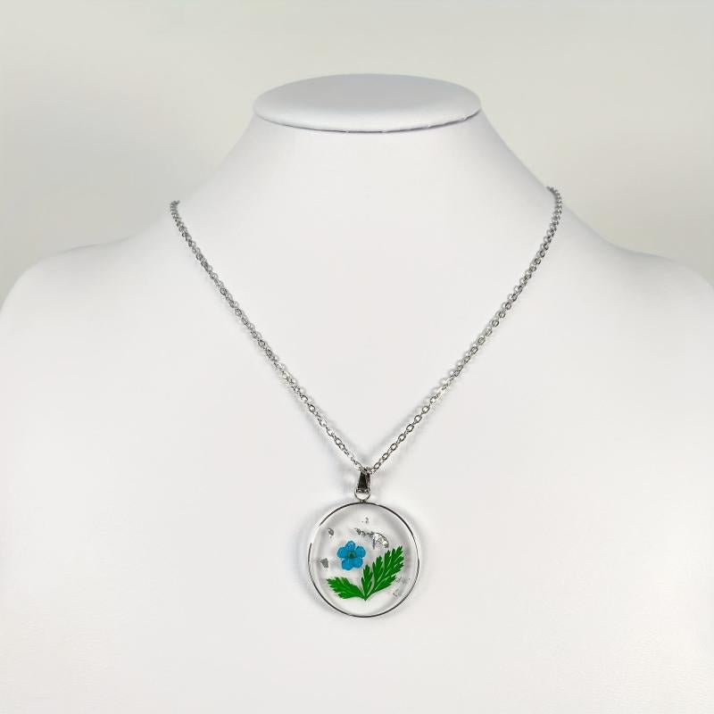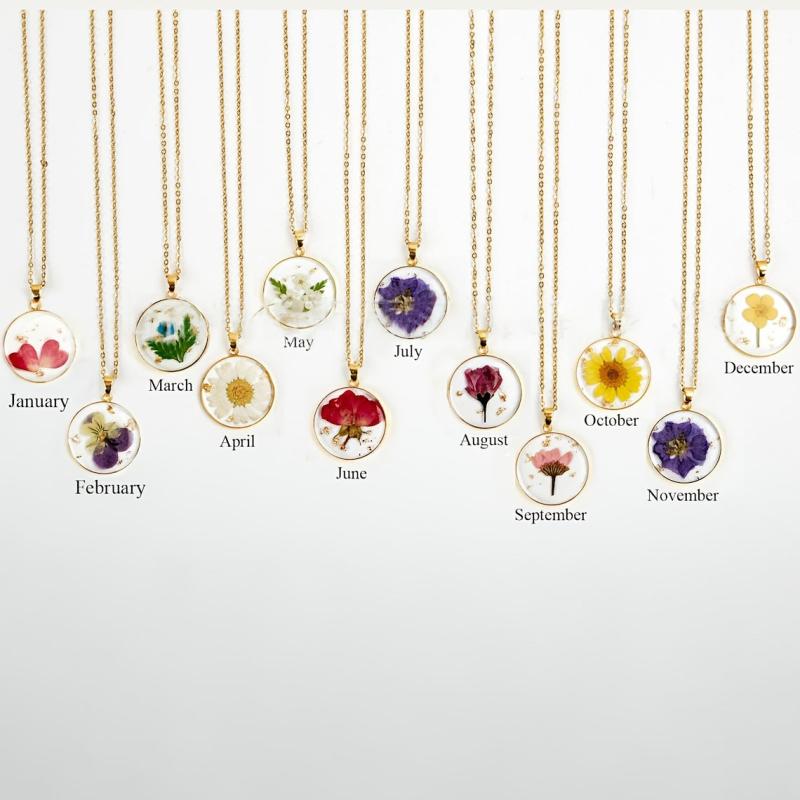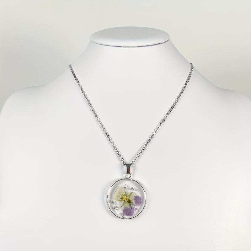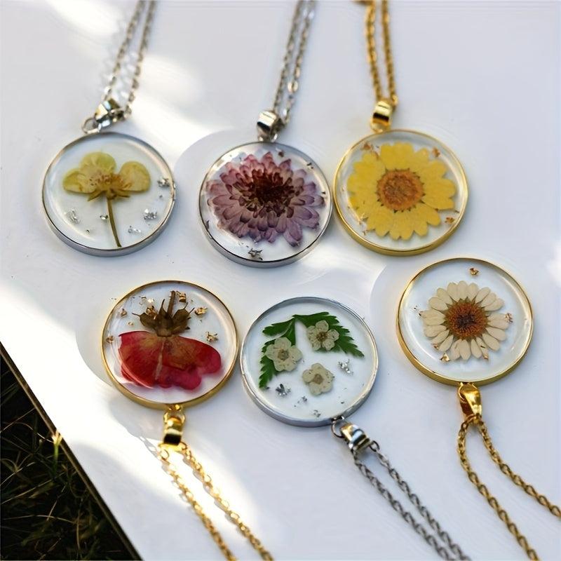 Unique and creative pendant with real dried flowers encapsulated in resin. Perfect gift for December birthdays.