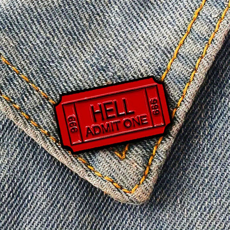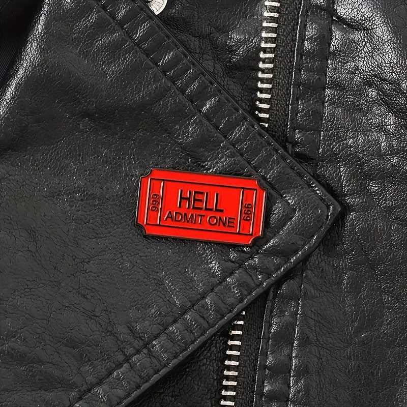 Rectangular letter number enamel brooch pin suitable for unisex denim jackets and bags.