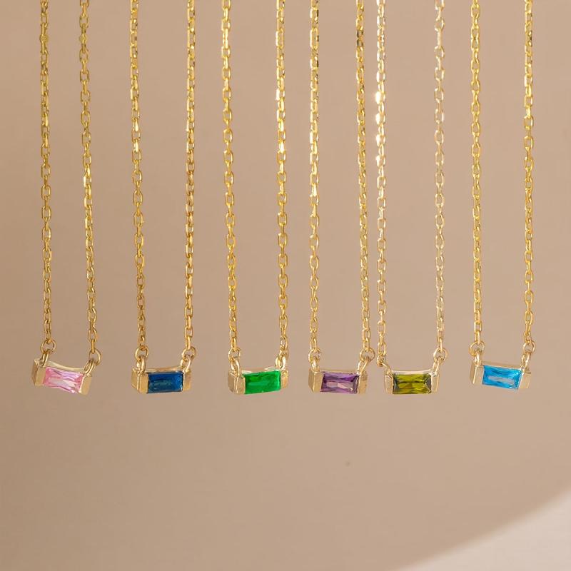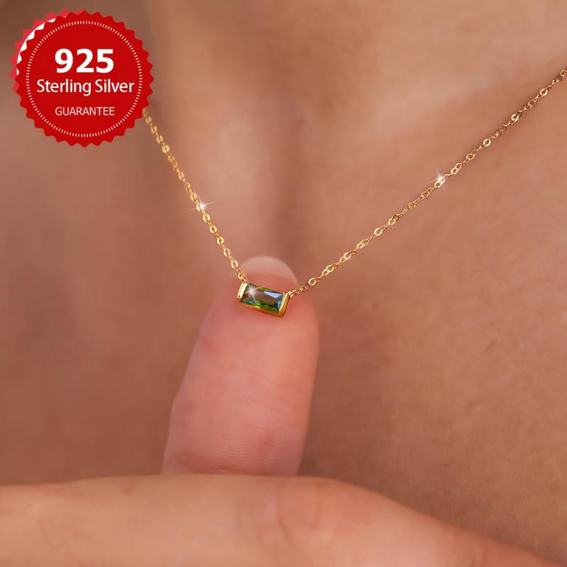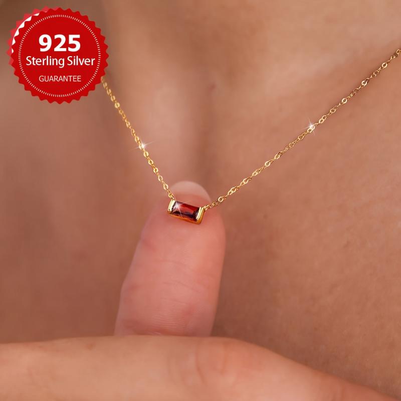 This elegant necklace features a rectangular birthstone pendant crafted from pure s925 silver and gold. It makes a perfect gift for birthdays or special occasions.