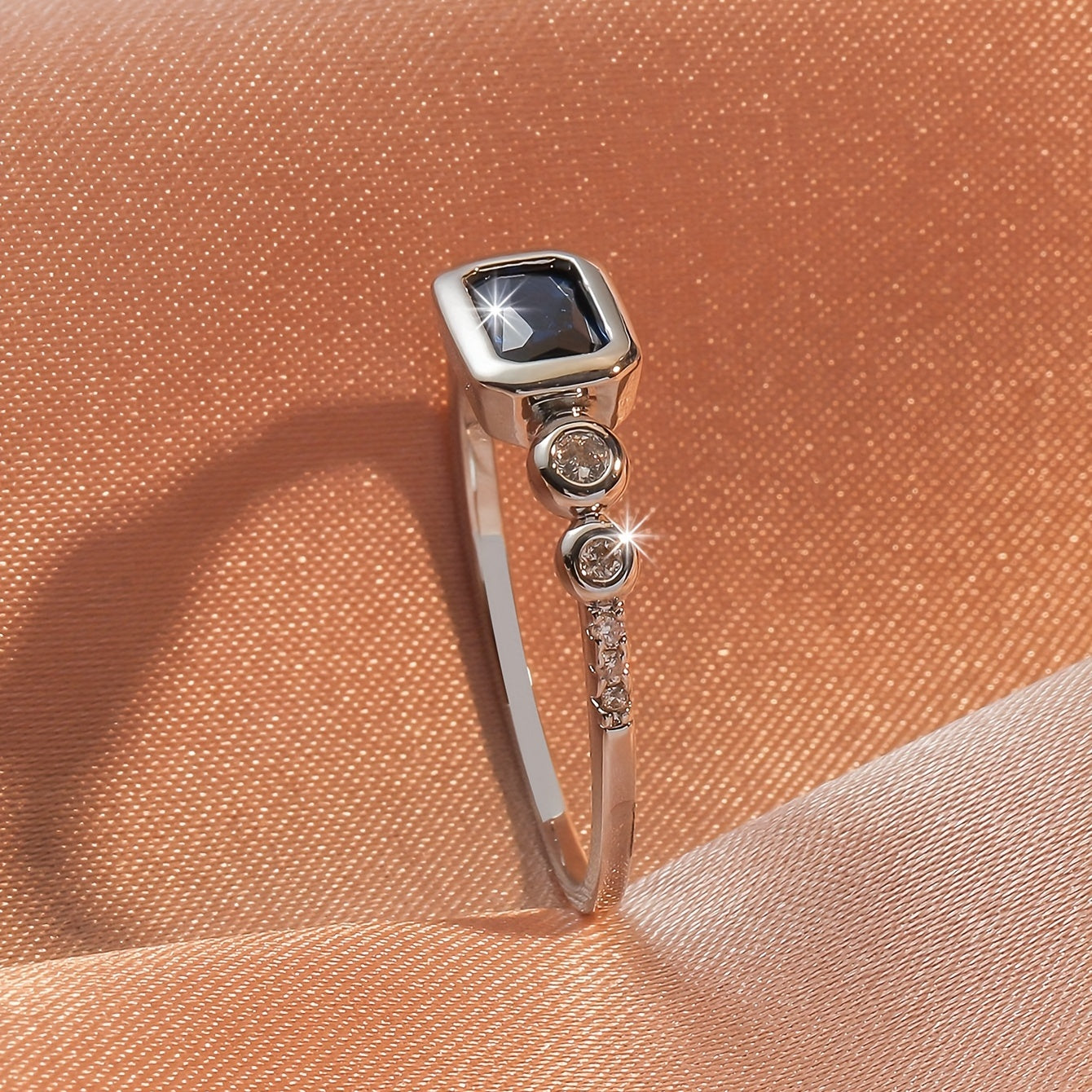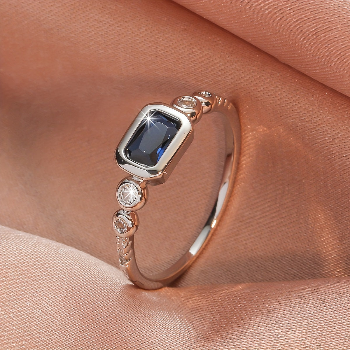 Elegantly designed inlaid faux sapphire ring for versatile style and jewelry decor.