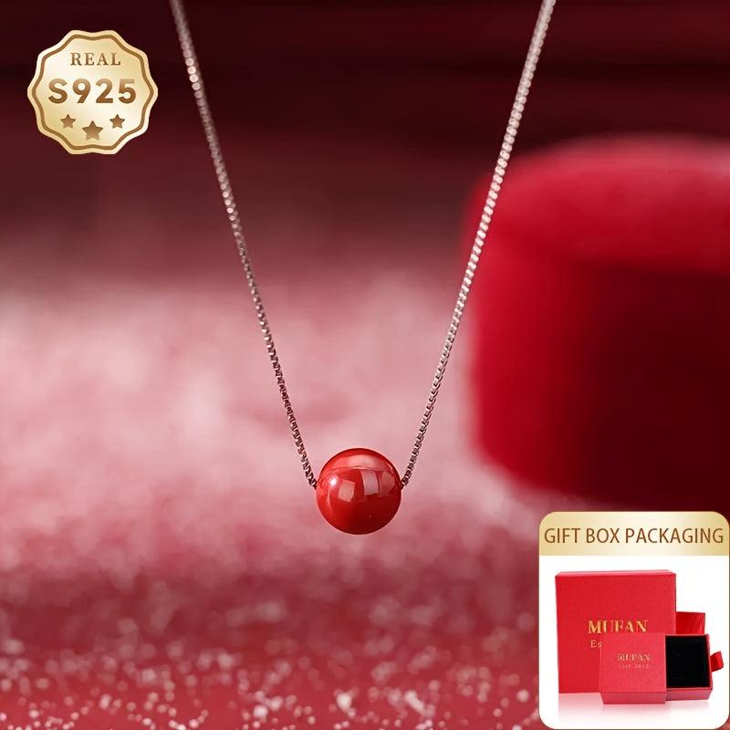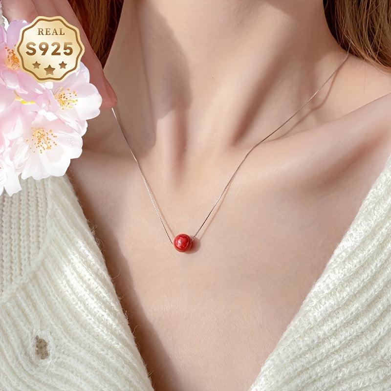 Vintage tribal style pendant necklace featuring a red Dalmatian stone inlay. Made of S925 silver, adjustable length, suitable for daily wear.
