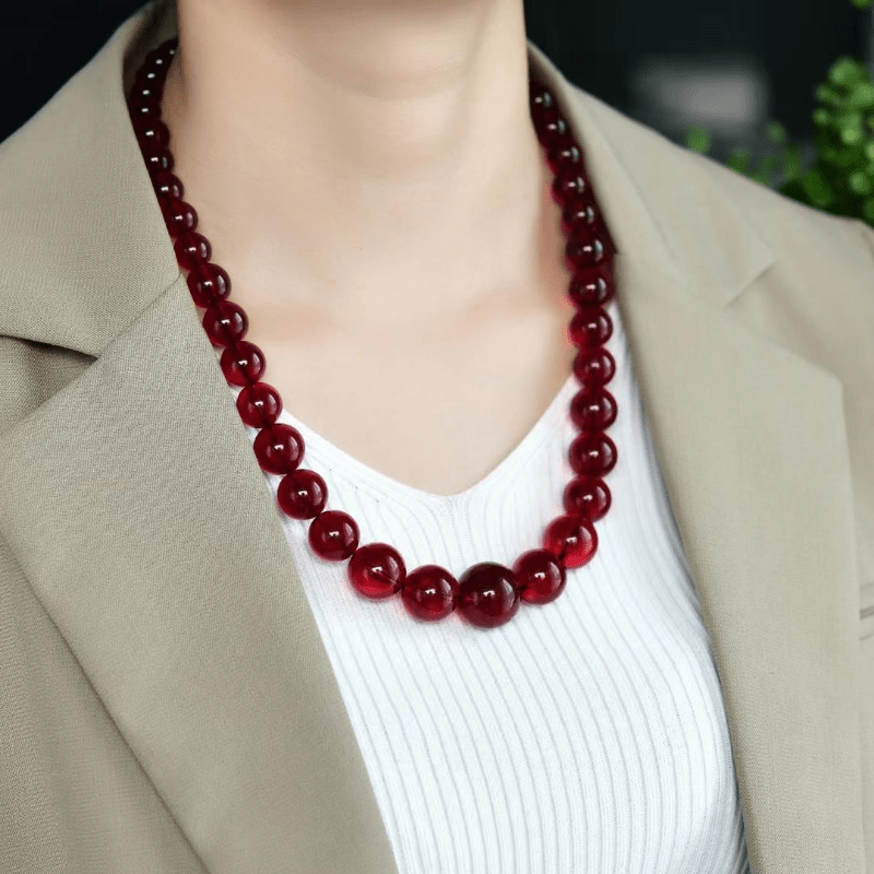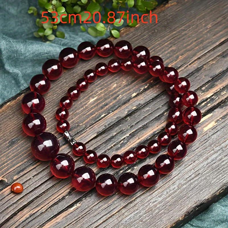 This stunning red glass bead necklace features a round pendant, making it ideal for daily wear and special occasions. A perfect gift for Mother's Day or any occasion.