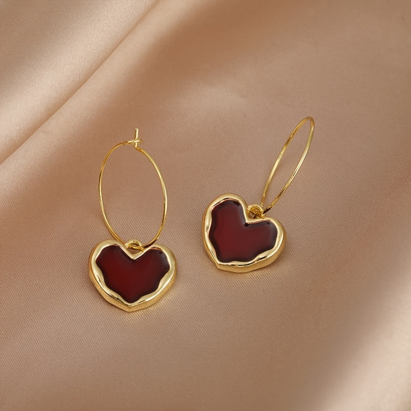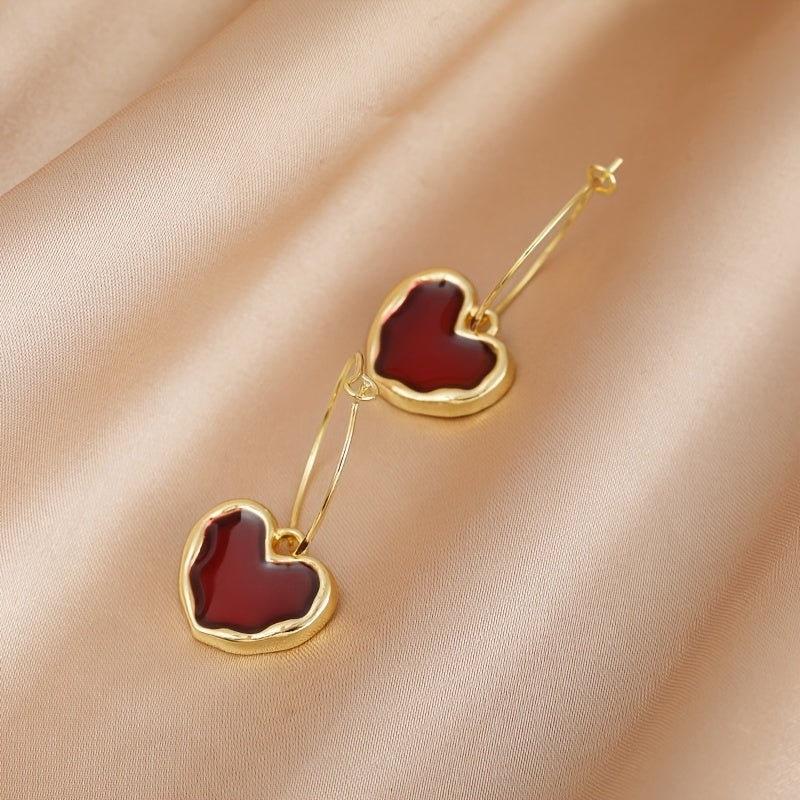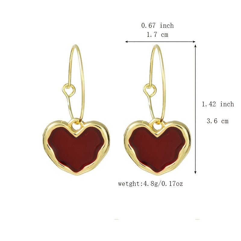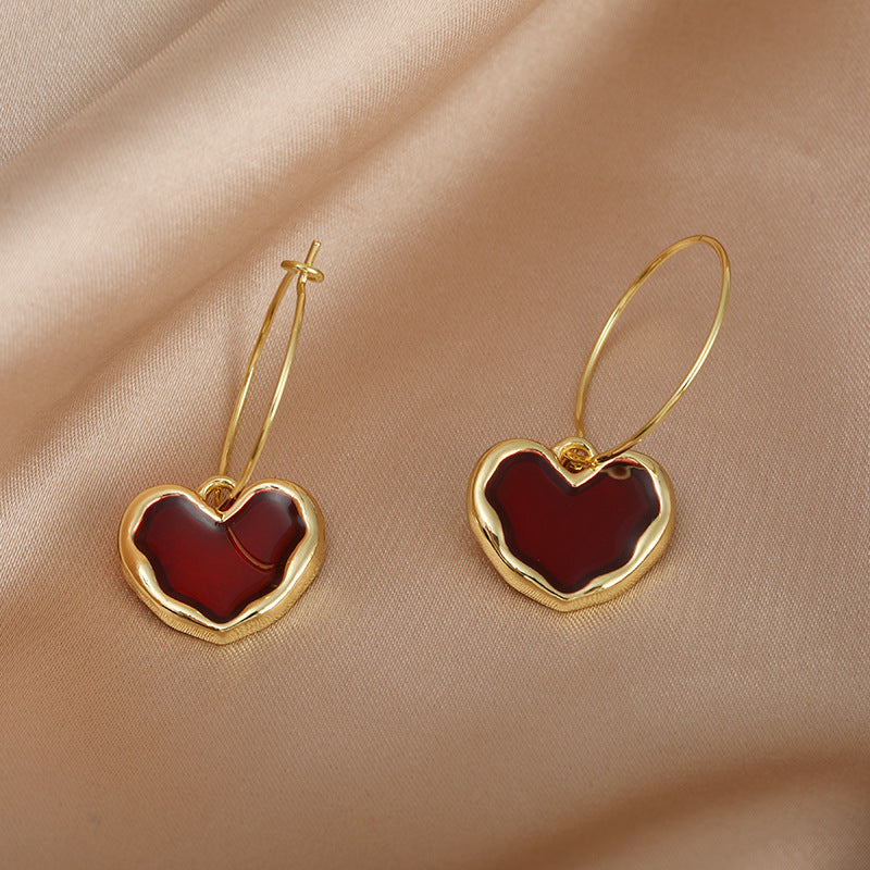 Red Love Heart Earrings Versatile Ear Jewelry For Women