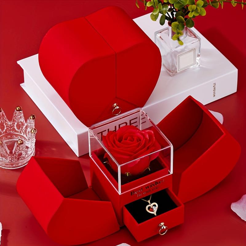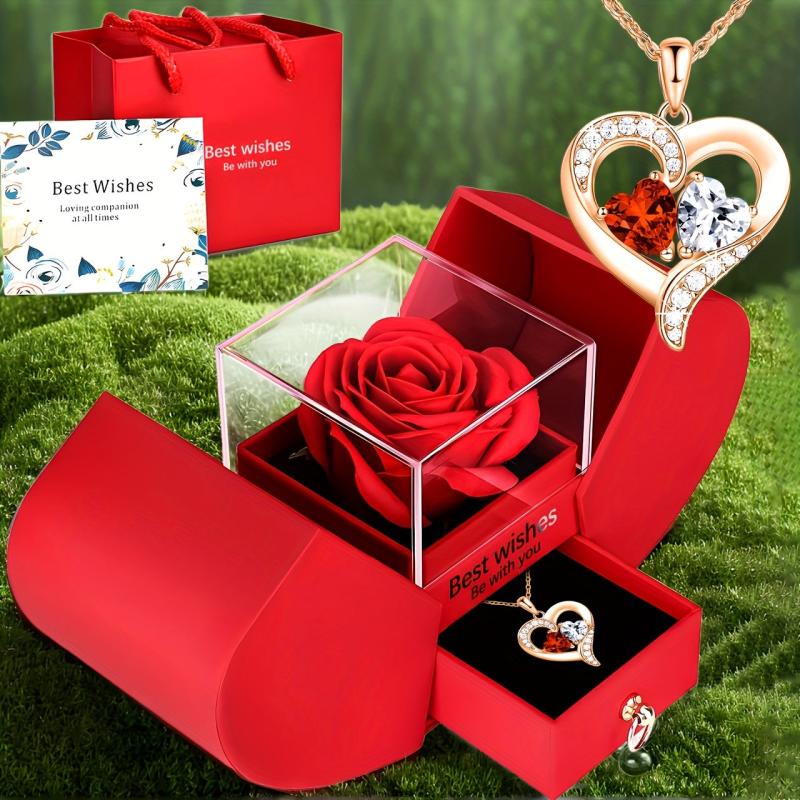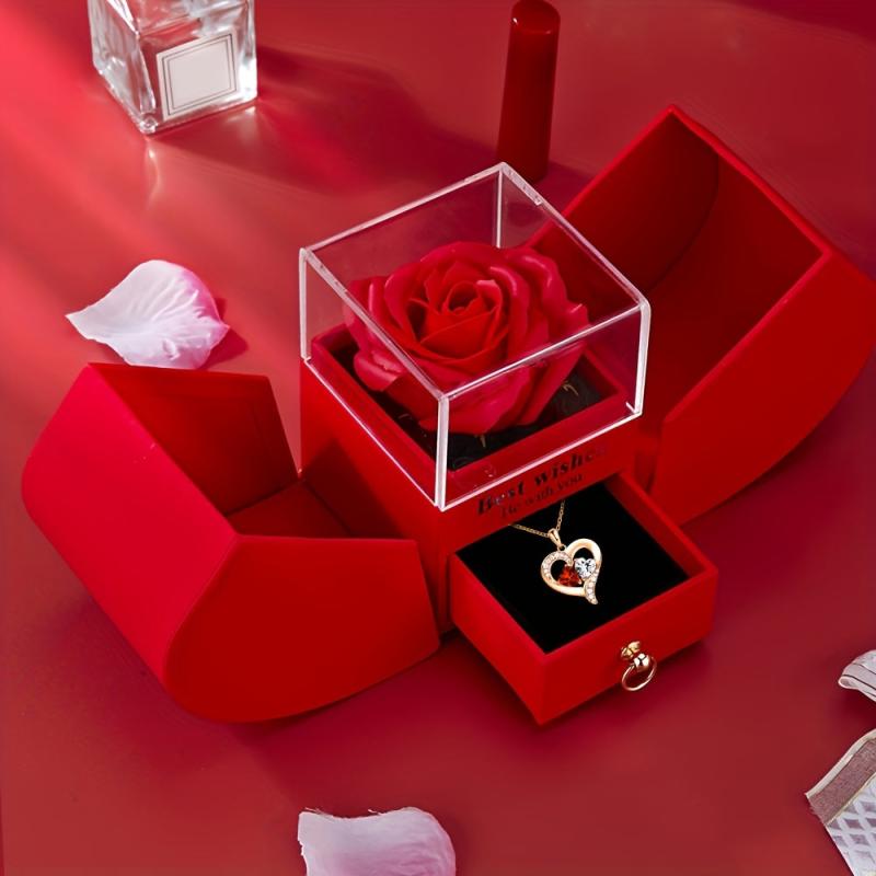 Surprise your wife, lover, or mom with this exquisite red rose flower and heart-shaped necklace set. Perfect for holiday parties, gatherings, or as a thoughtful companion gift.