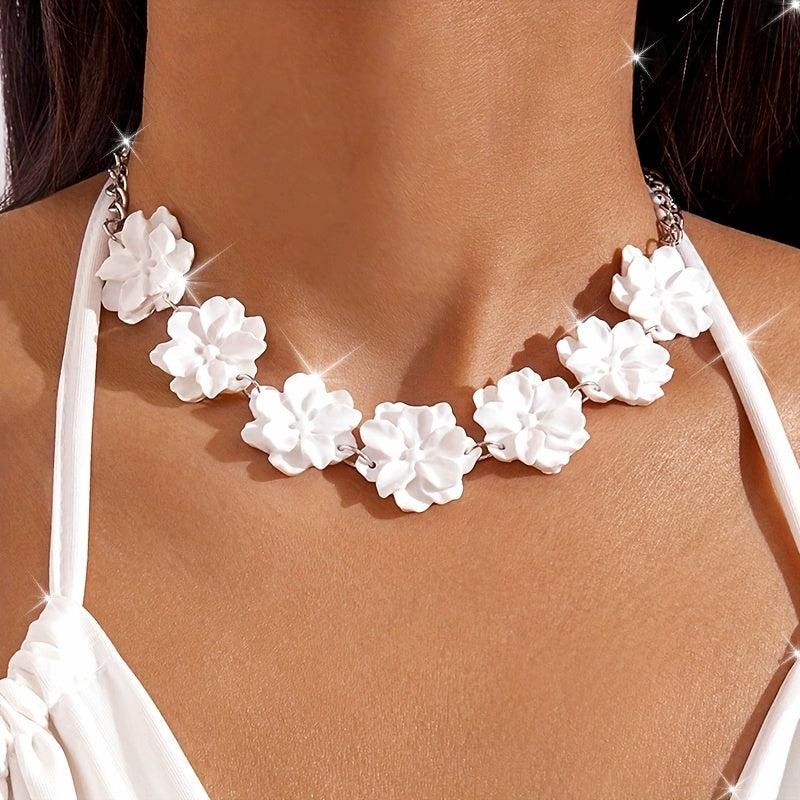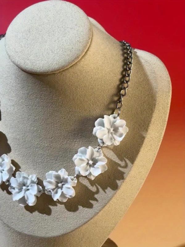 Elegant resin camellia necklace perfect for women's dance parties. Versatile and stylish design that adds a touch of sophistication to any outfit.