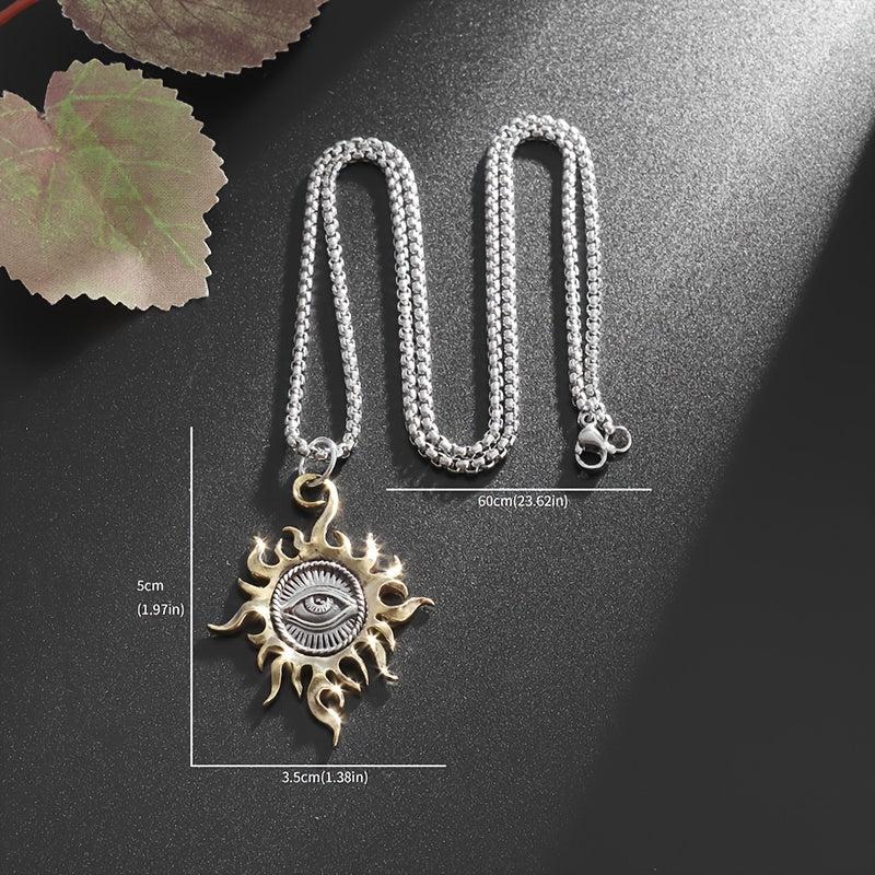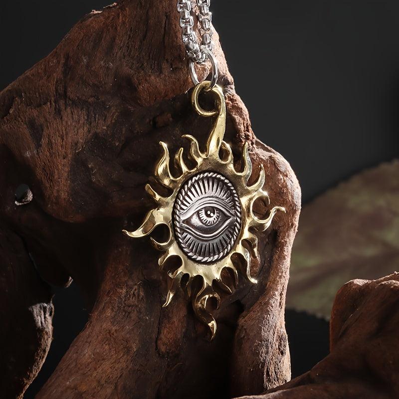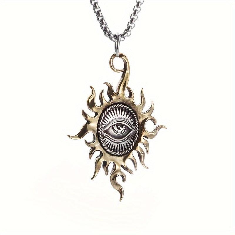 Embrace a mystical style with this retro pendant necklace featuring the all-seeing eye sun god design. It's a great accessory for rock parties and a unique gift idea.