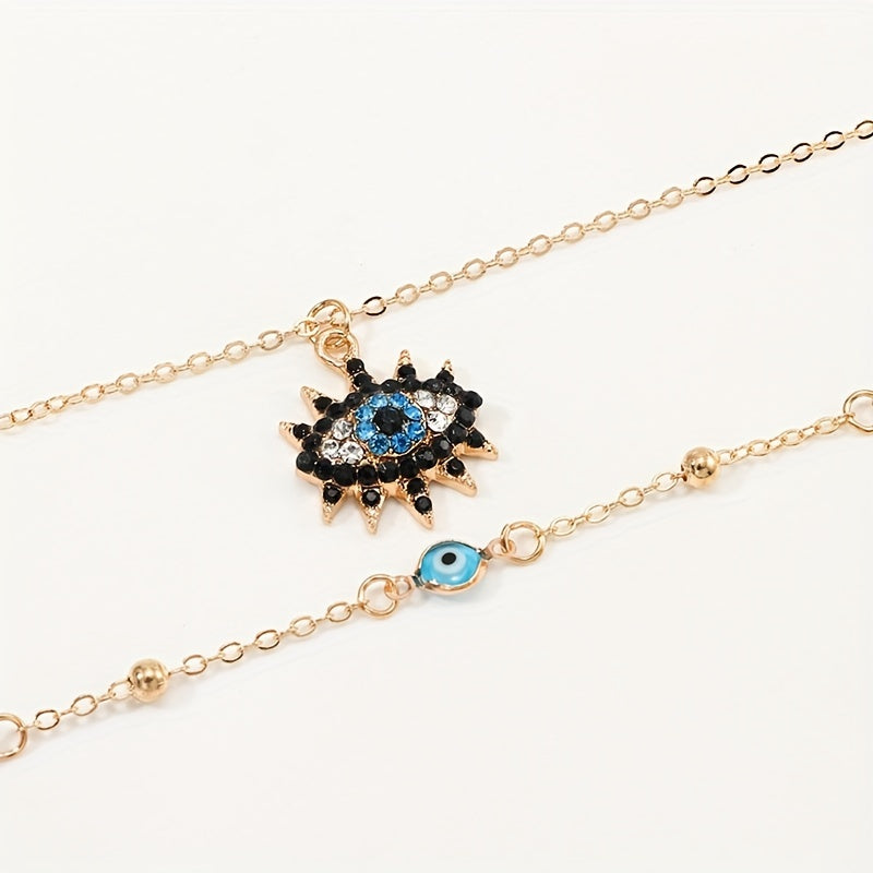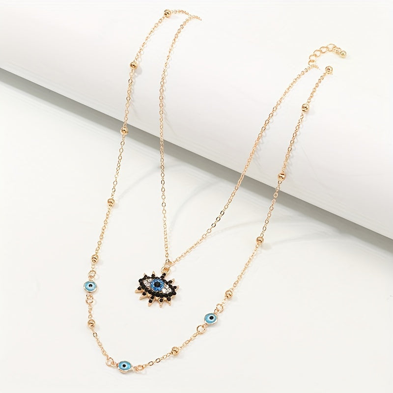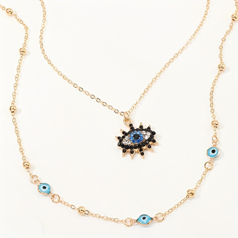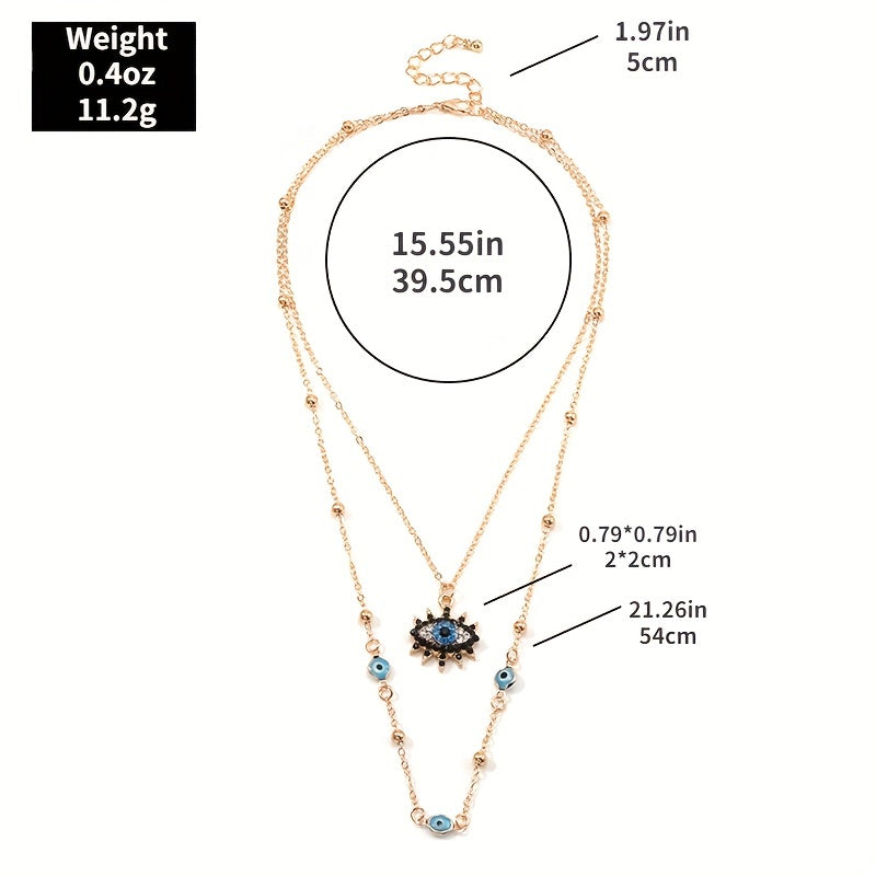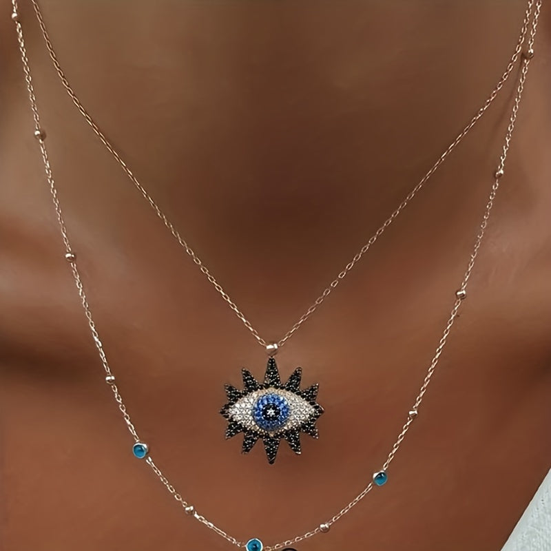 This Evil's Eye necklace features a full crystal eye pendant, perfect for adding a touch of retro charm to your look.
