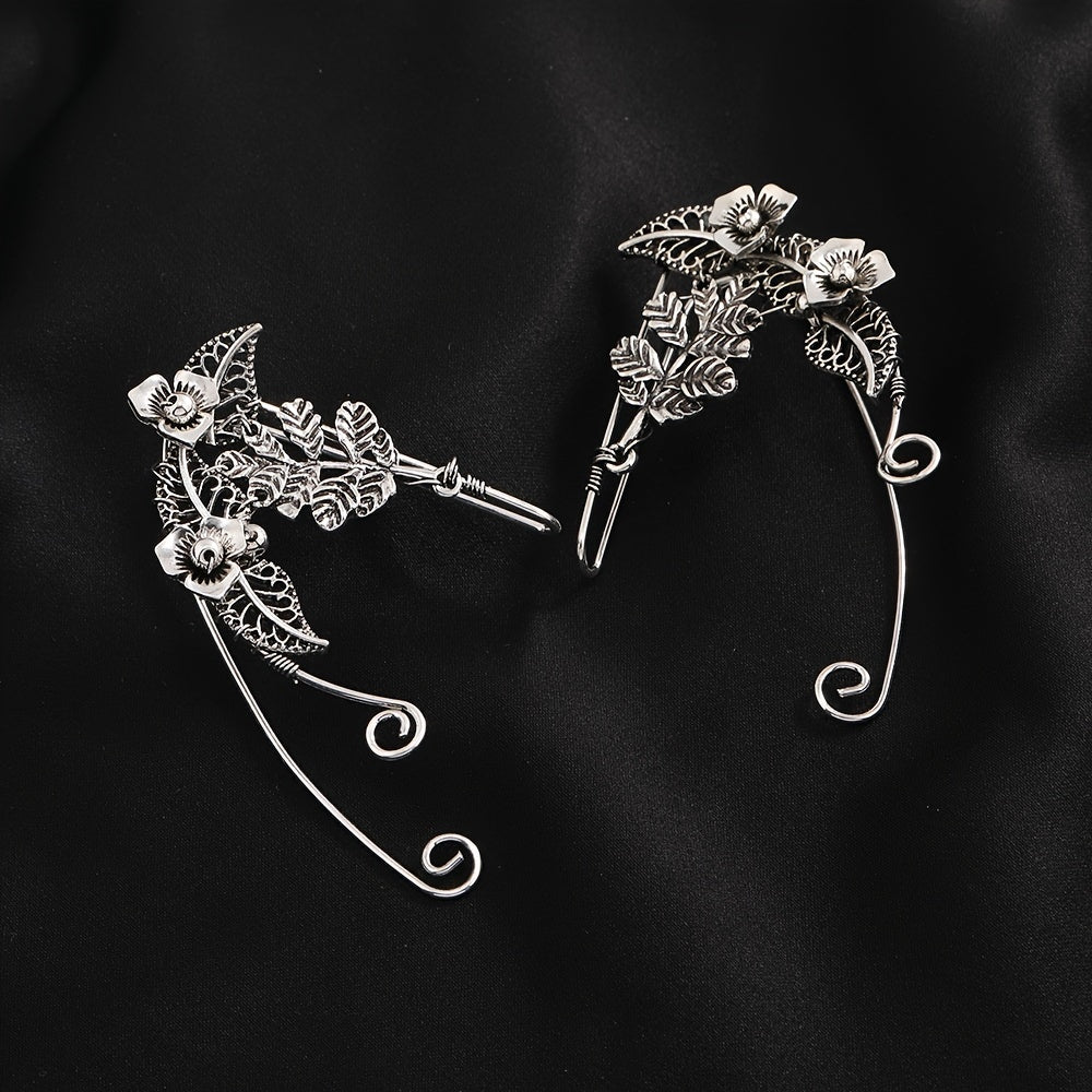 These non-pierced clip-on earrings feature a retro design with leaf and flower elements. Perfect for those without pierced ears.