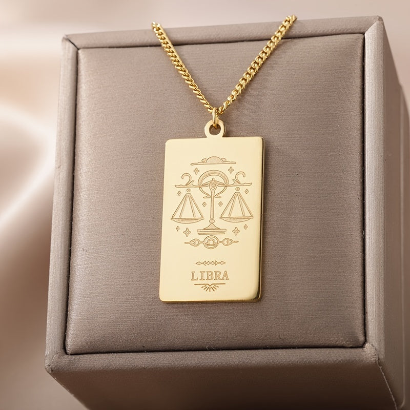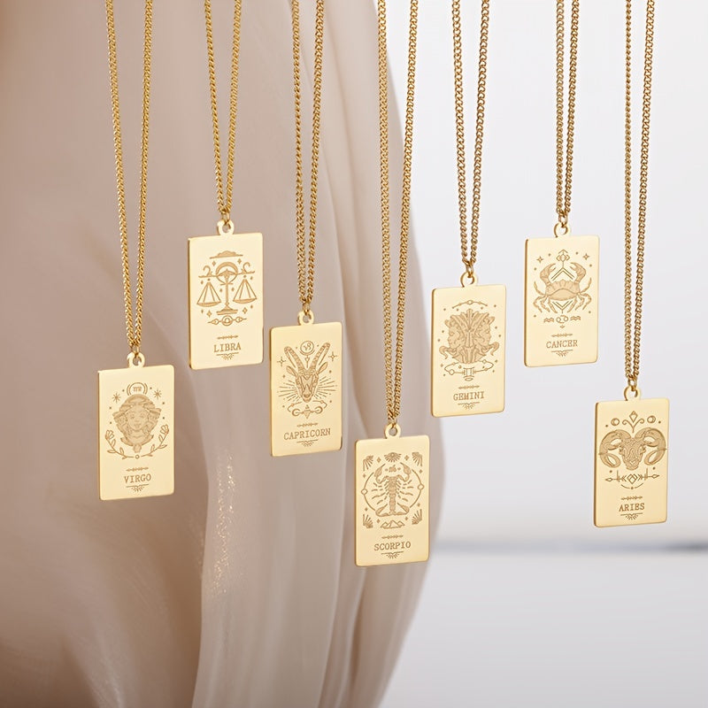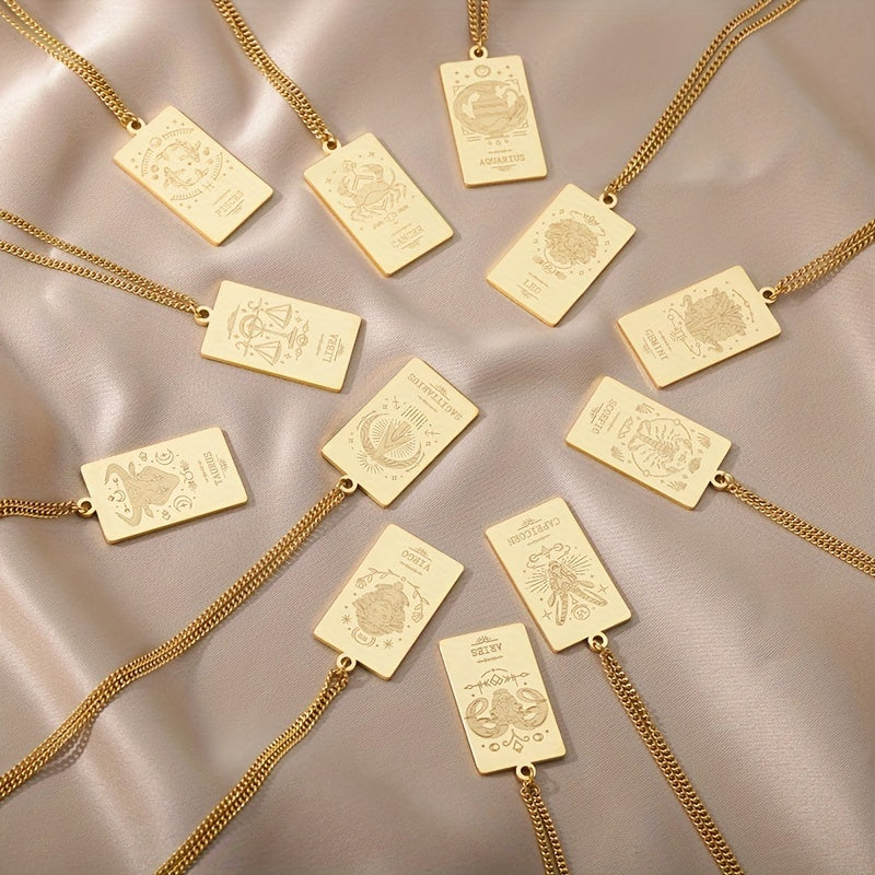 Elegant and stylish stainless steel necklace featuring a tarot pattern tag with the 12 zodiac constellations. Perfect for adding a unique touch to your ensemble.
