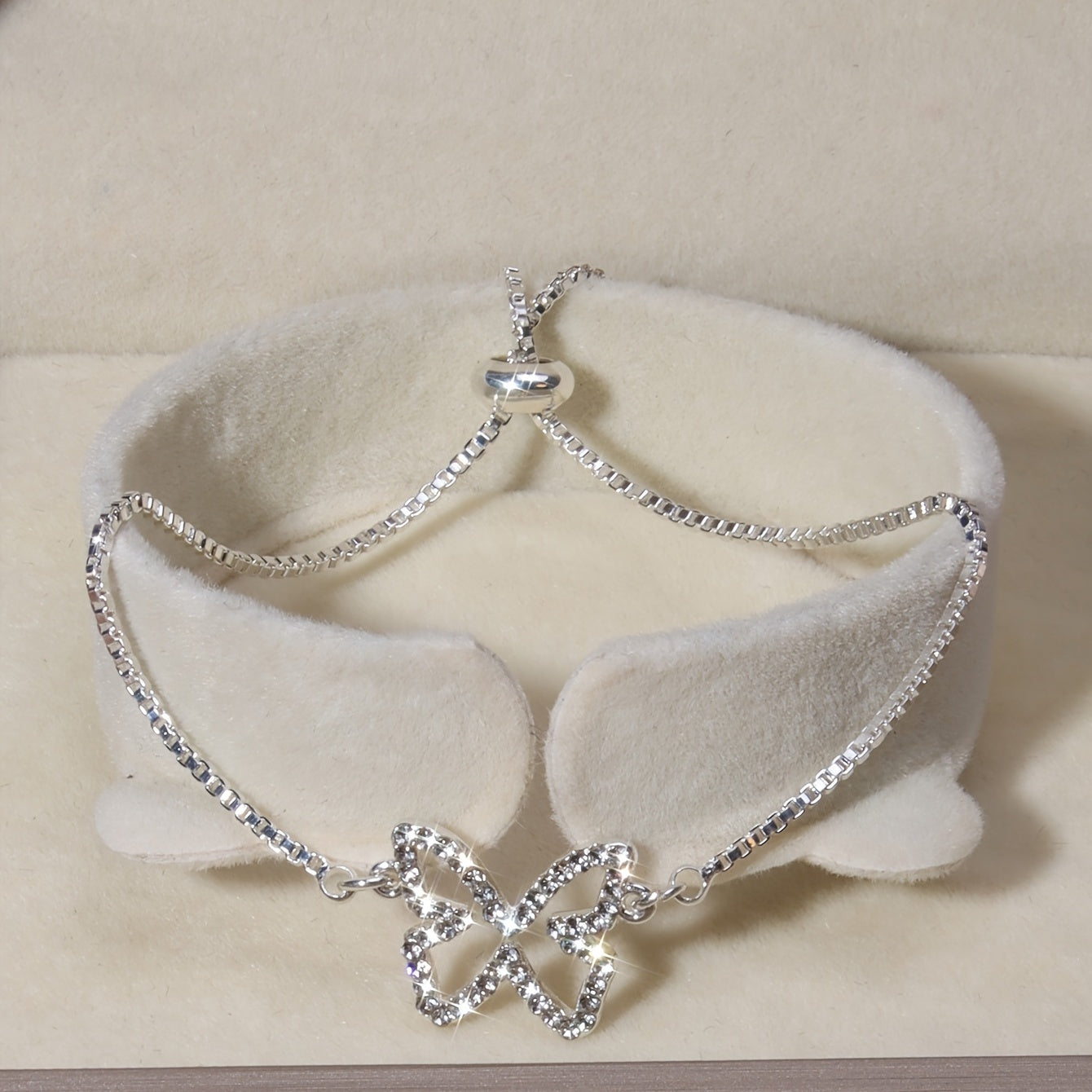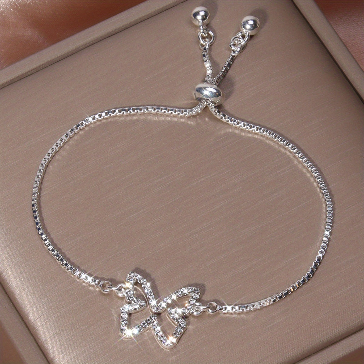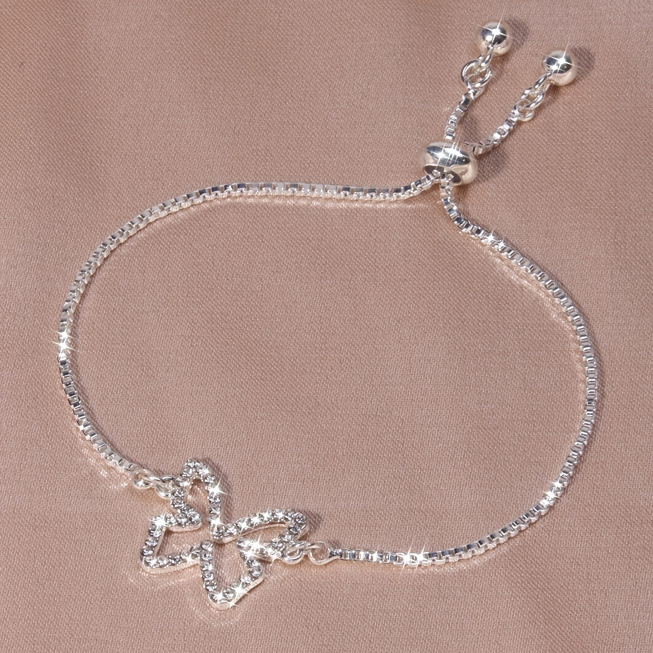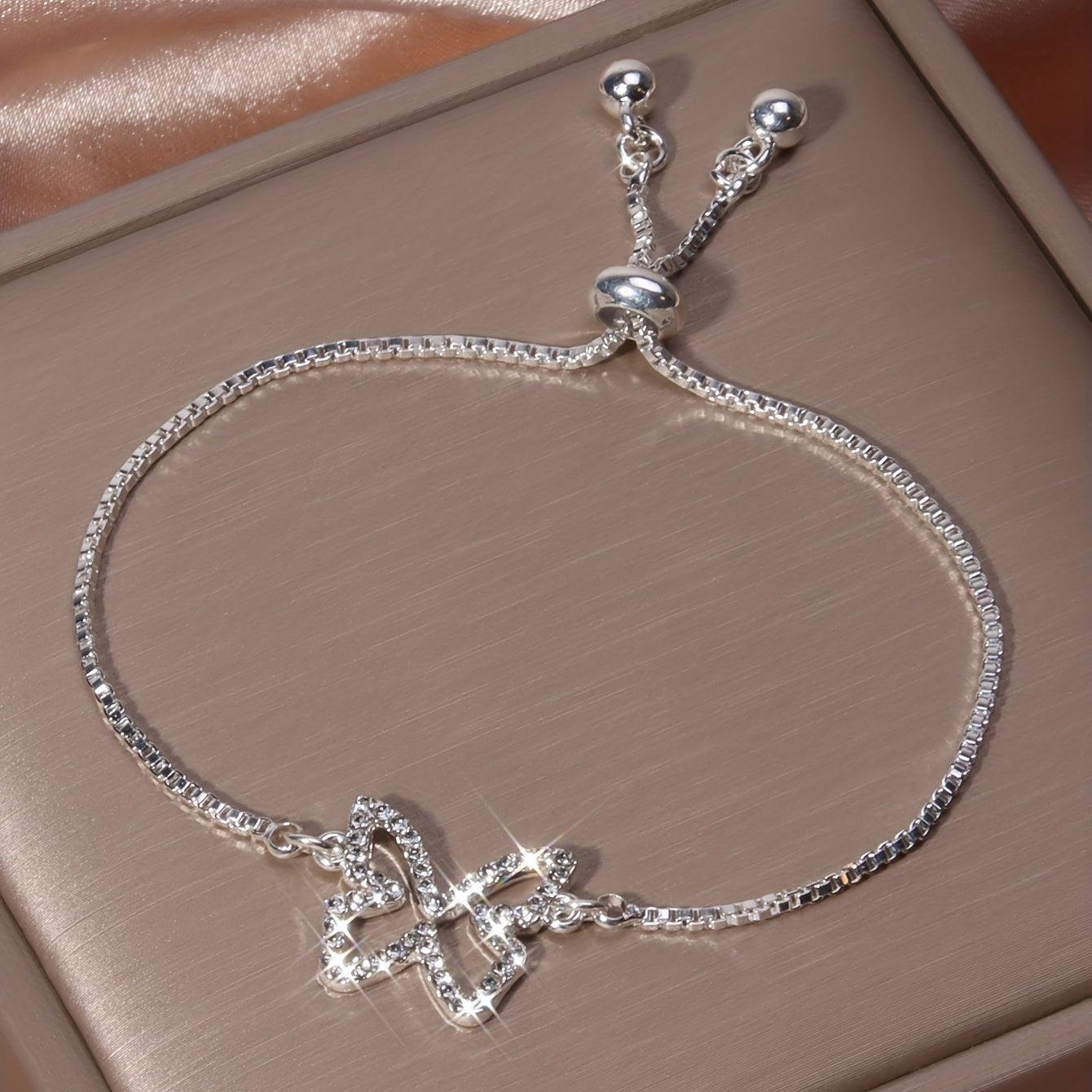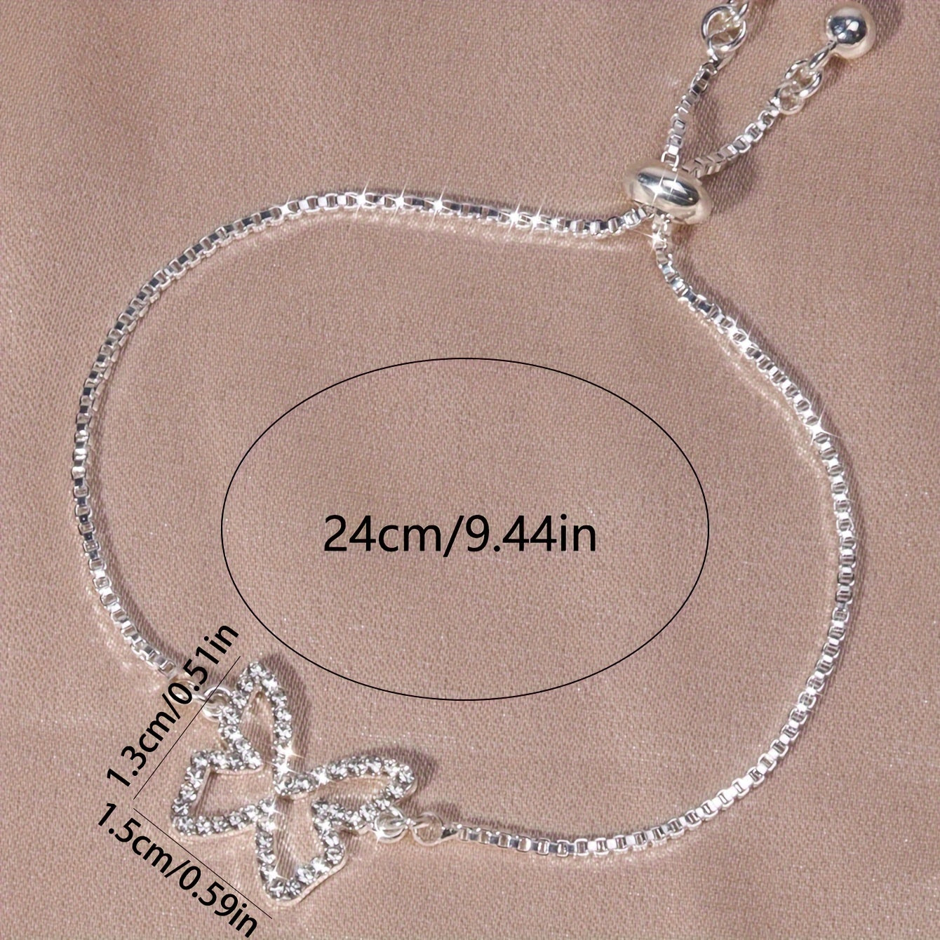 This stunning tennis bracelet is crafted with copper and adorned with rhinestones in a hollow butterfly shape. It adds elegance and sparkle to any outfit.