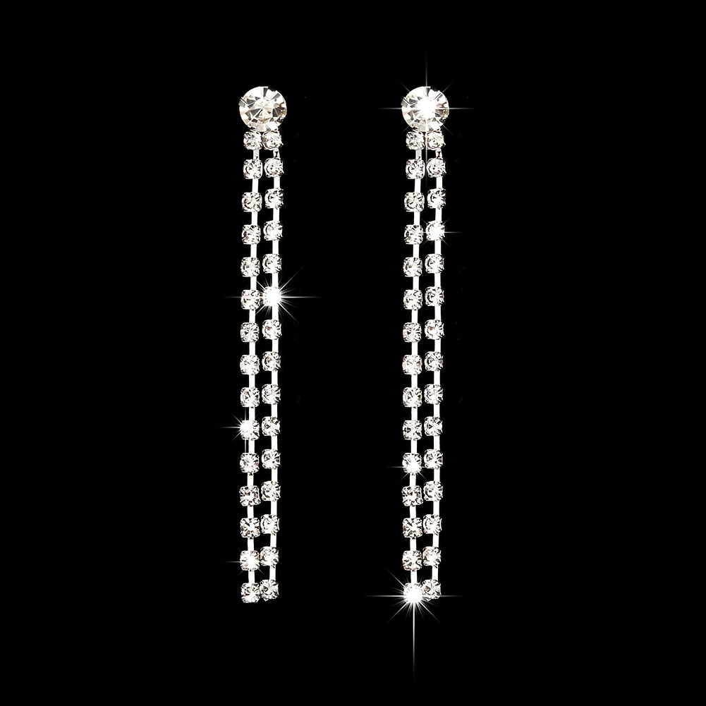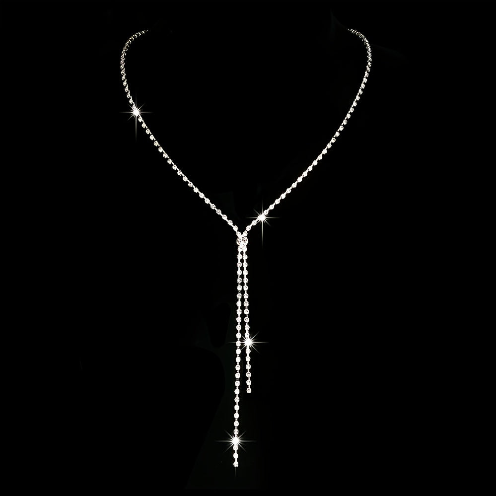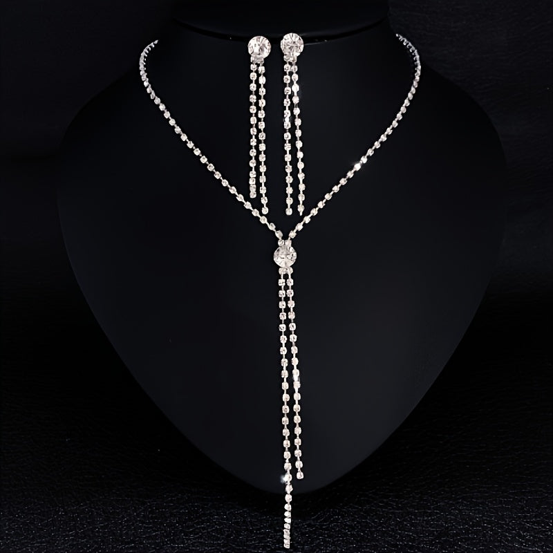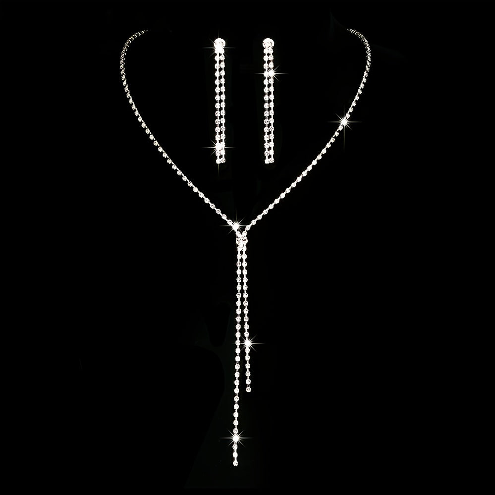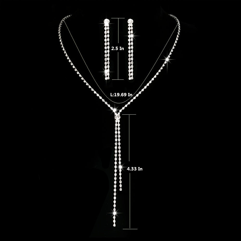 Enhance your look with this romantic jewelry set featuring a rhinestone chain pendant necklace and drop earrings.