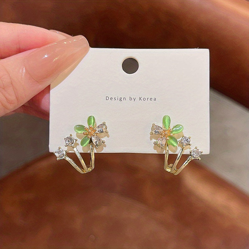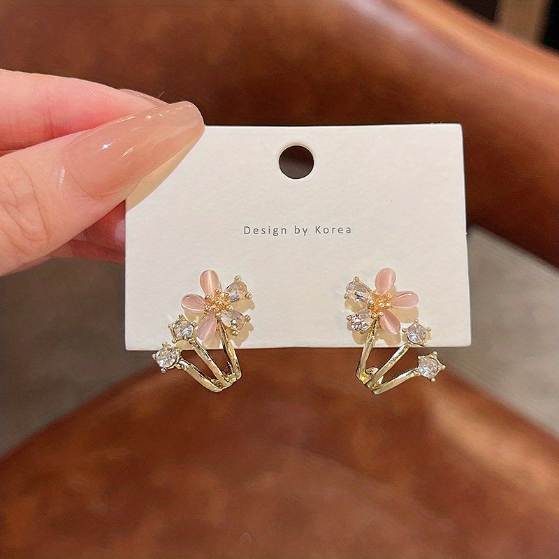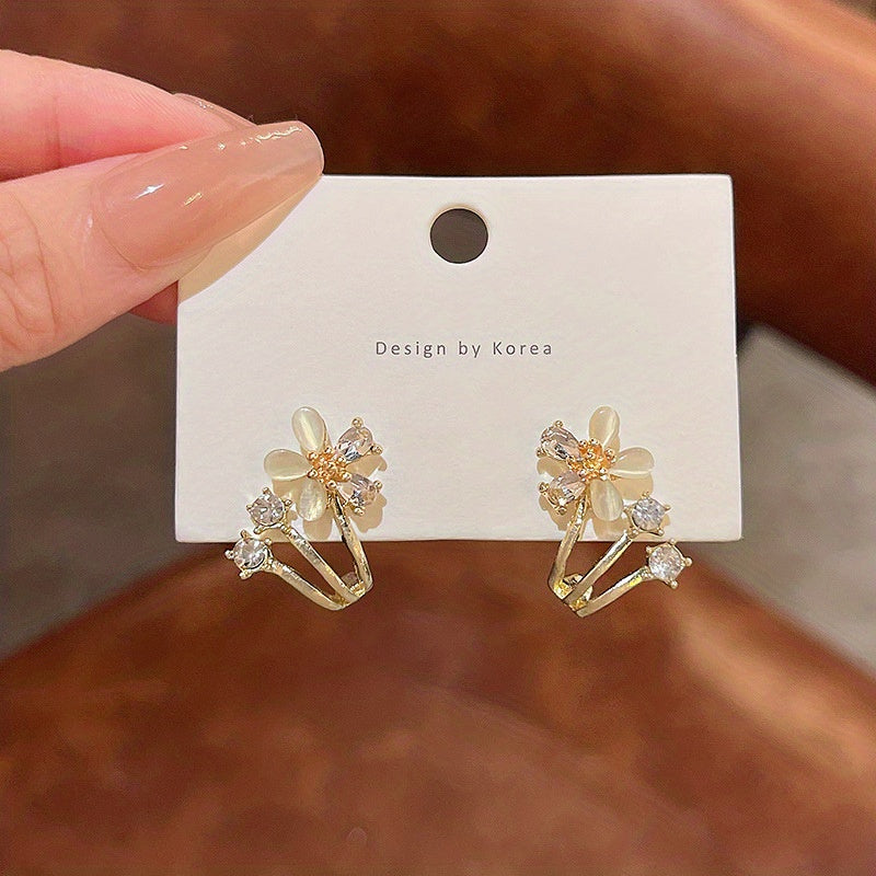 These elegant stud earrings feature a flower design with sparkling rhinestones. Made of silver-plated alloy, they are perfect for adding a touch of glamour to any outfit.