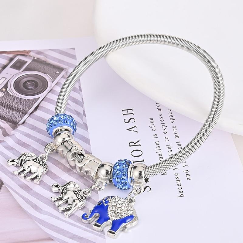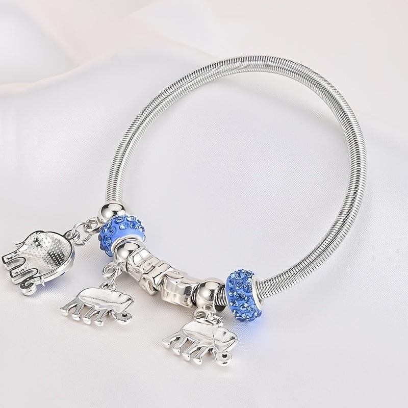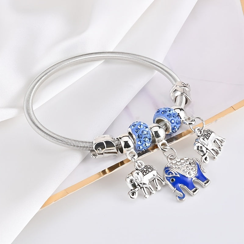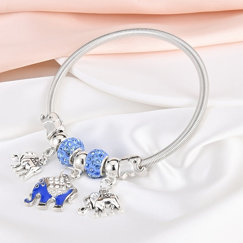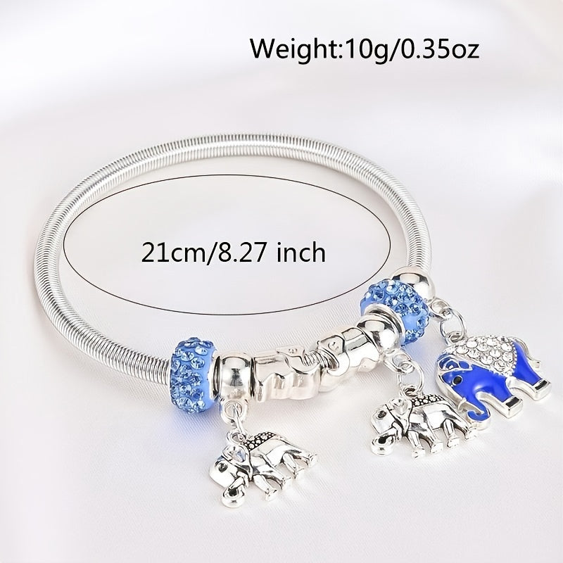 Elegant and dazzling rhinestone elephant pendant bracelet featuring an adjustable snake chain. Perfect for summer parties, this wrist band is a great gift for women.
