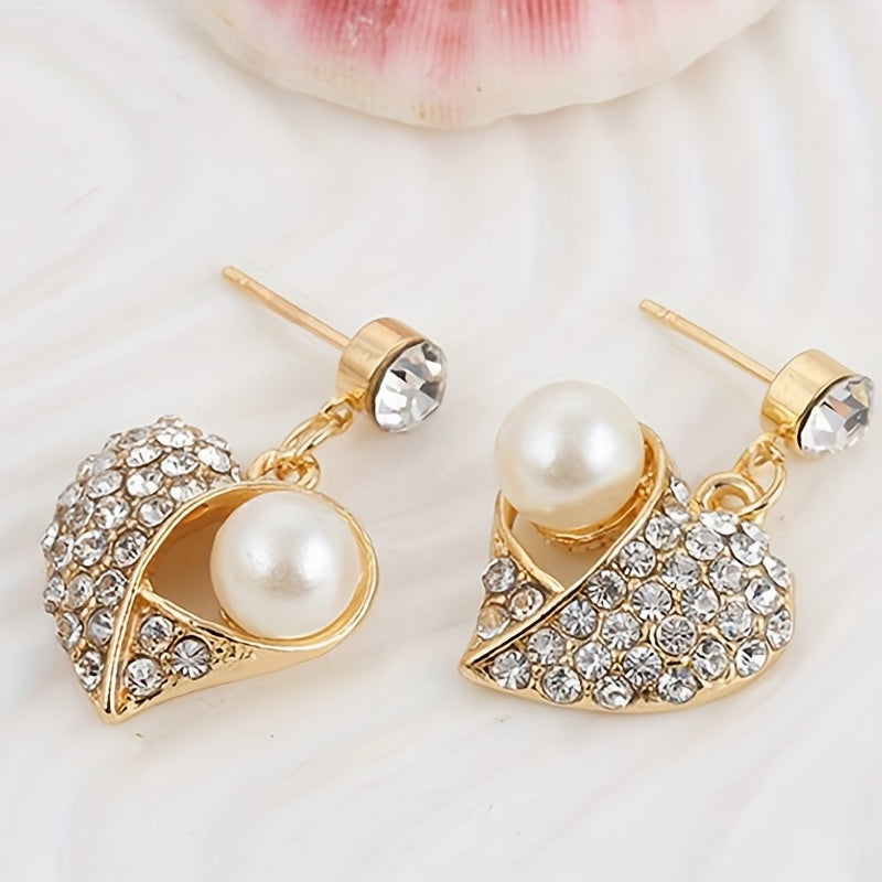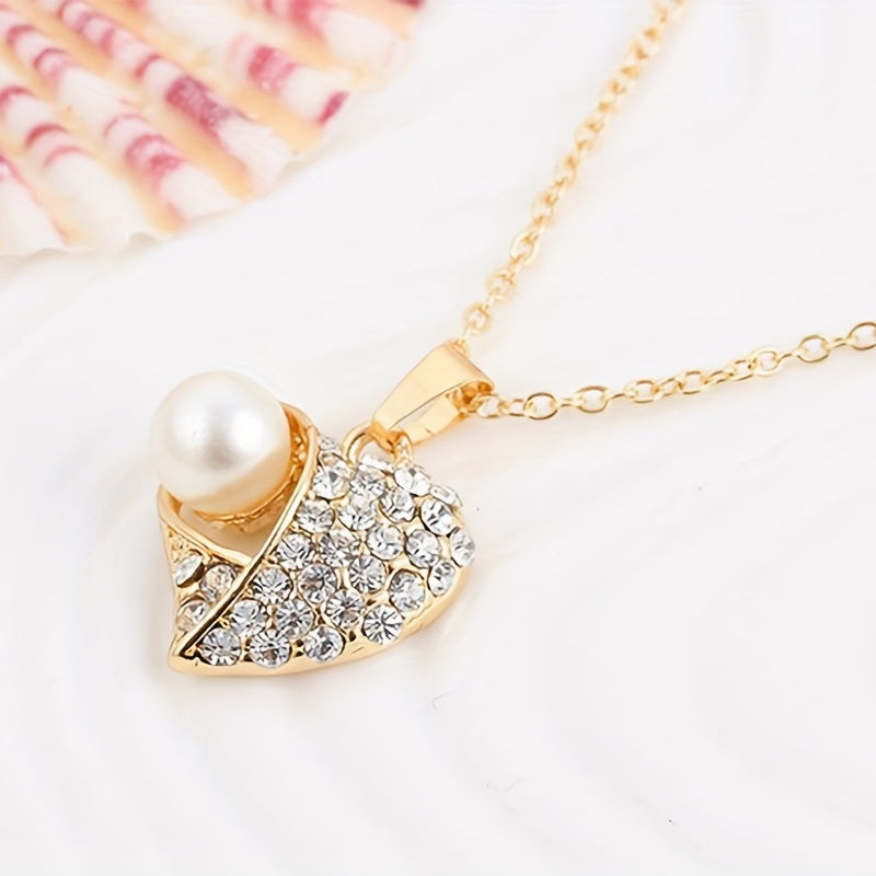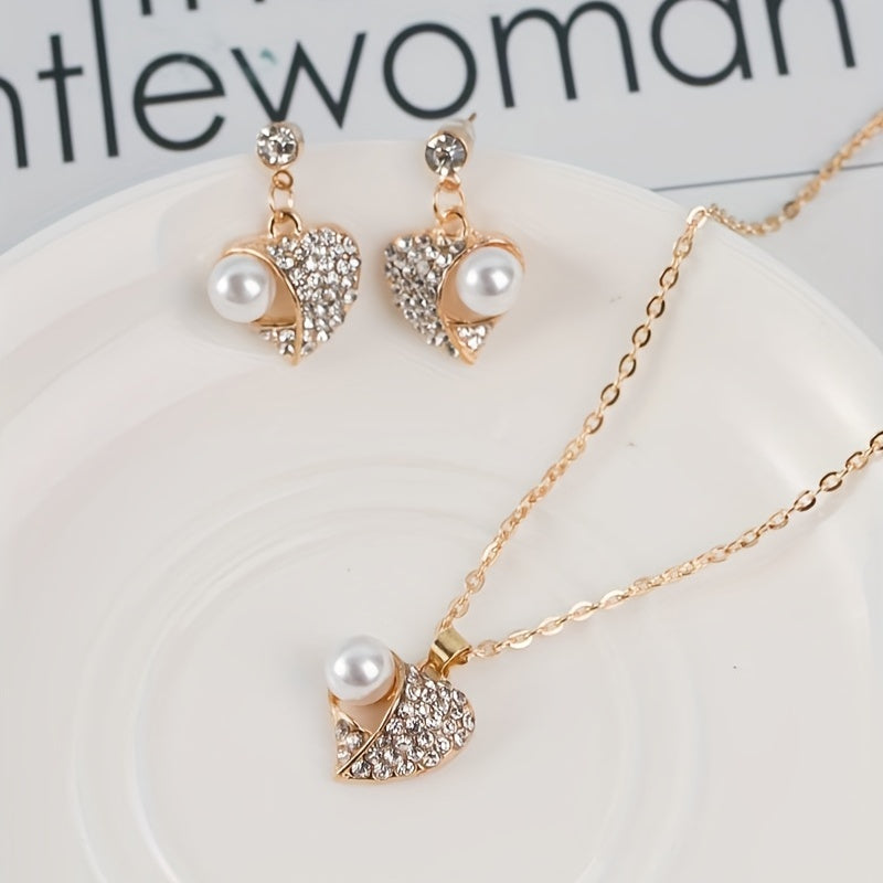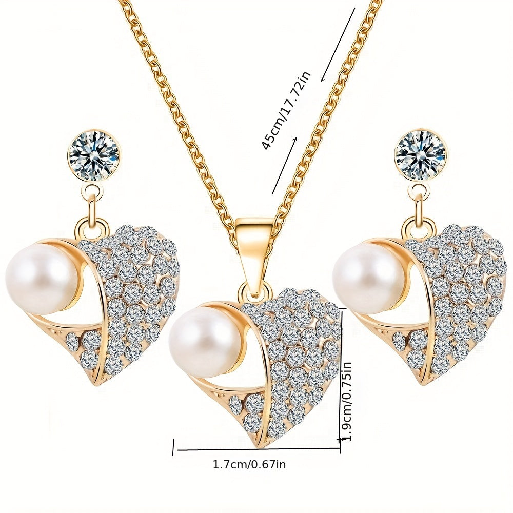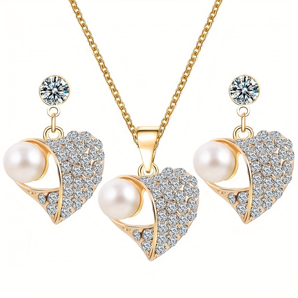 Stunning Love Heart Shape Rhinestones Necklace & Earrings Set, perfect for women.